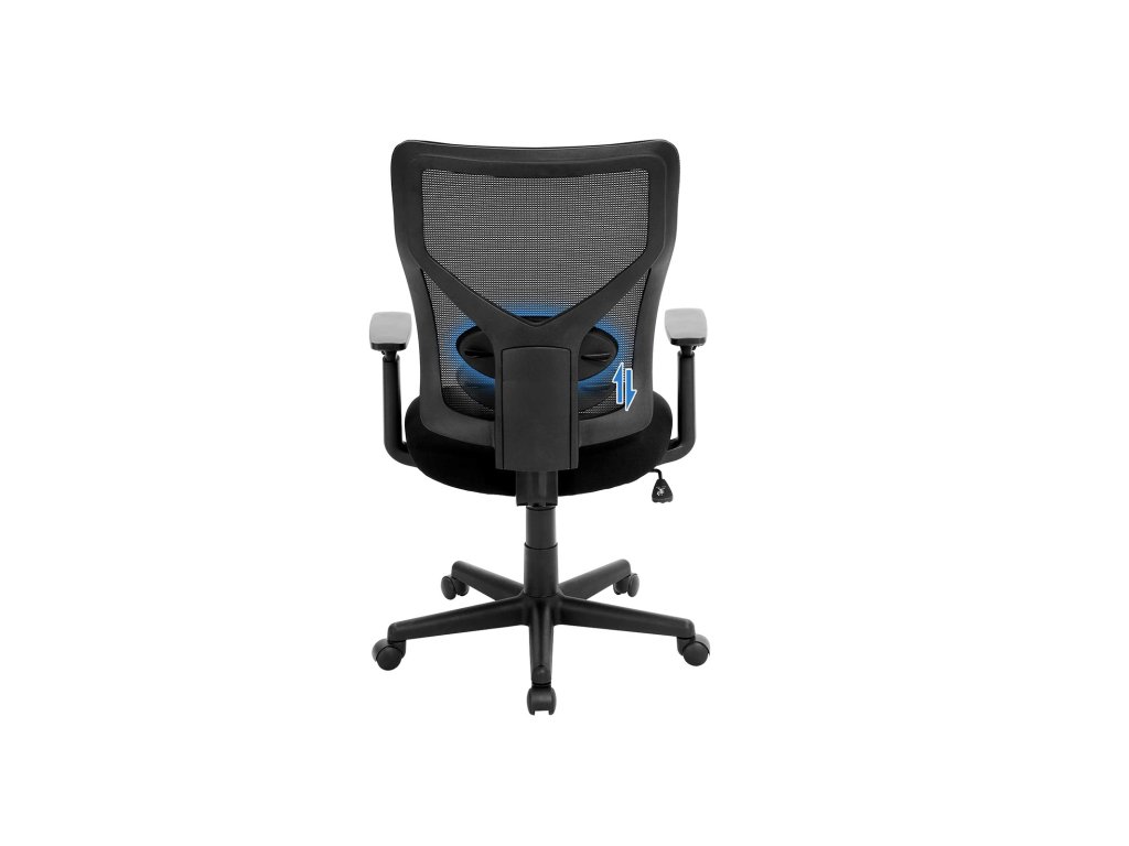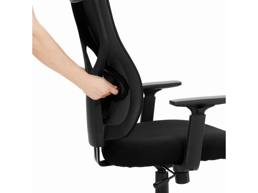 Kancelářská židle se středním síťovaným opěradlem, otočná ergonomická židle s mechanismem naklápění, polstrovaná s vnitřním pružením, nastavitelná bederní opěrka, područky, nosnost 120 kg, černá.