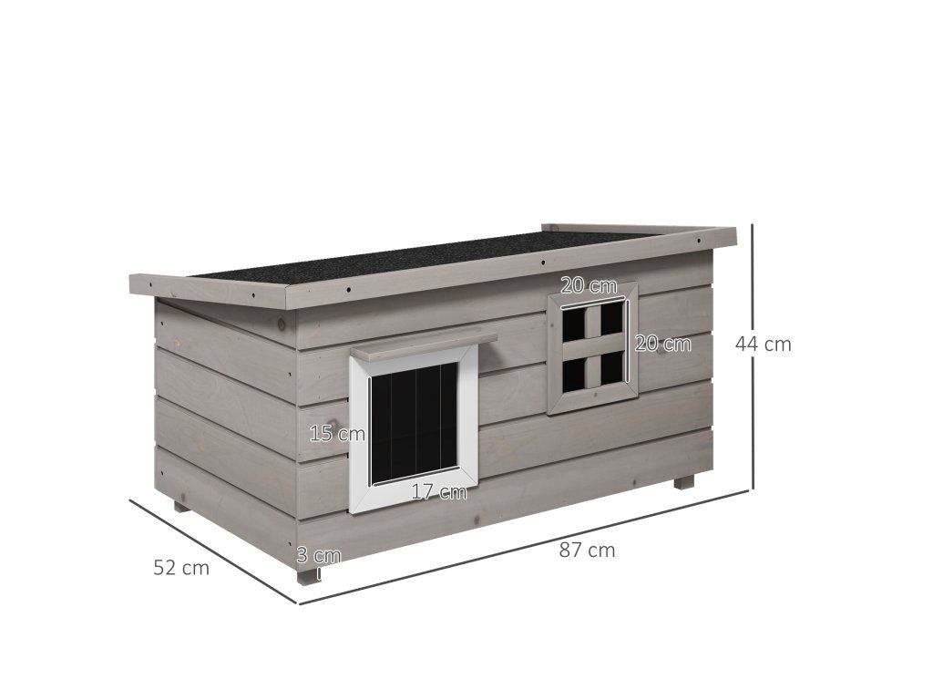 Dřevěný kočičí domek je vhodný pro kočky do 5 kg a lze jej používat uvnitř i venku. Kočičí domek má asfaltovou střechu, která chrání vaši kočku před nepříznivým počasím. Jeho vyvýšený design drží vaši kočku nad zemí, takže jí zajistí teplo a sucho. Tento malý domek pro zvířata poskytuje vaší kočce pohodlný a bezpečný životní prostor.