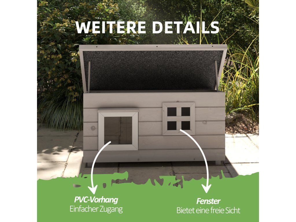 MASILNÁ KONSTRUKCE: Venkovní kočičí domek je vyroben z masivního jedlového dřeva, které je stabilní, robustní a bezpečné. PVC závěs umožňuje vaší kočce snadný vstup a výstup.