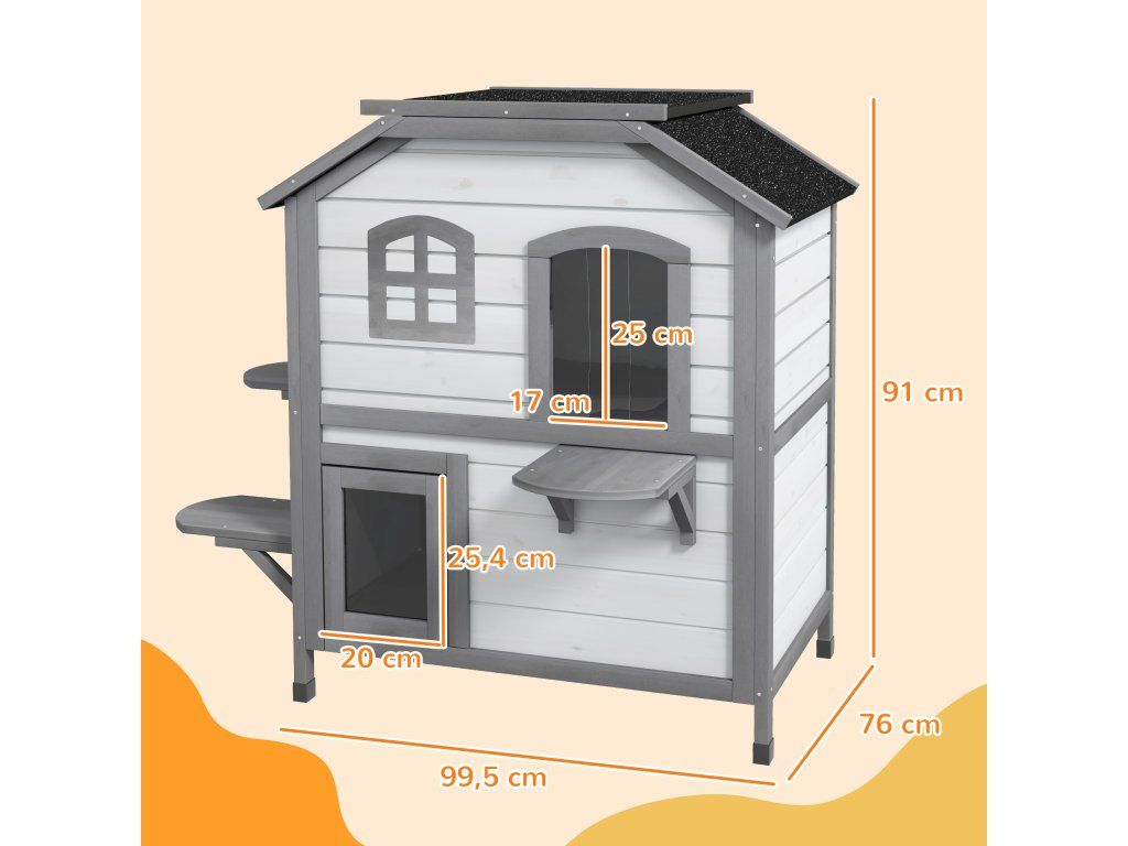 Dvoupatrový kočičí domek: Tento velký kočičí domek je vyroben z jedlového dřeva s ochranným nátěrem a je bezpečný pro vaše kočky. Má nosnost 30 kg.