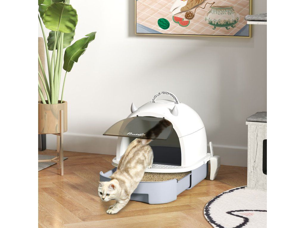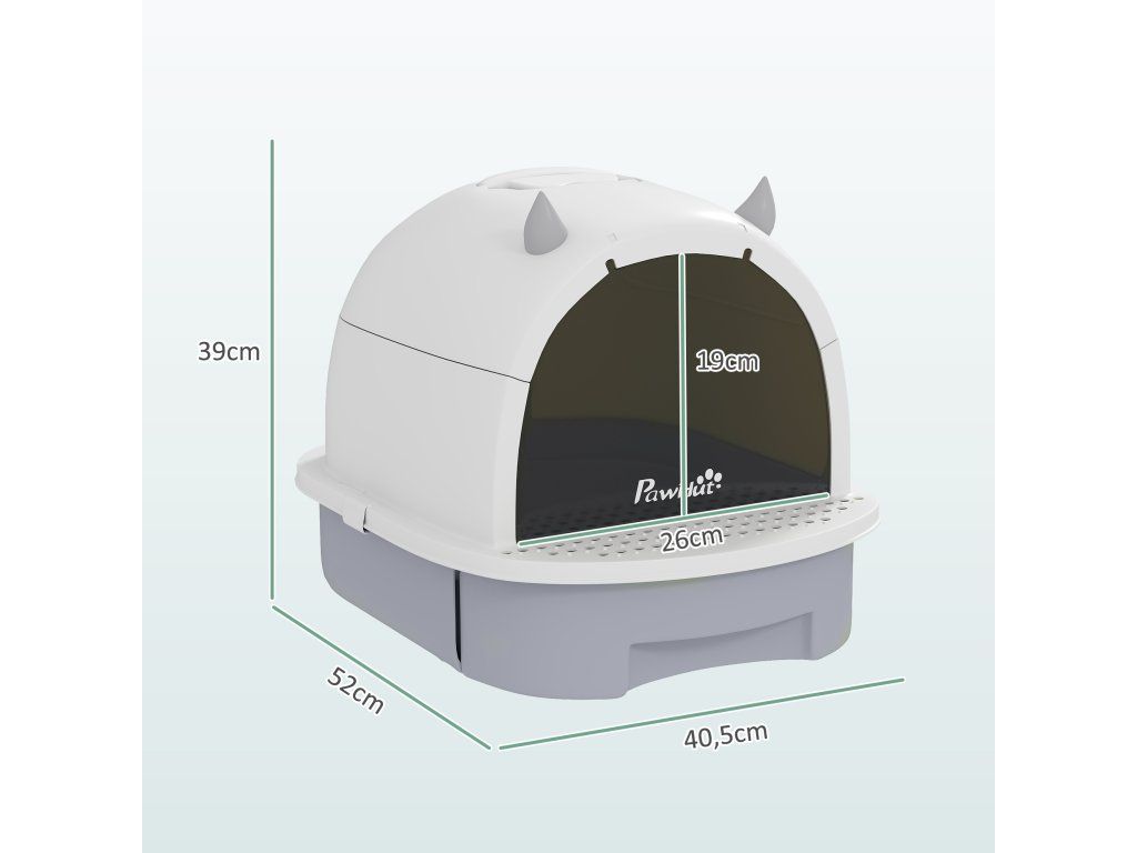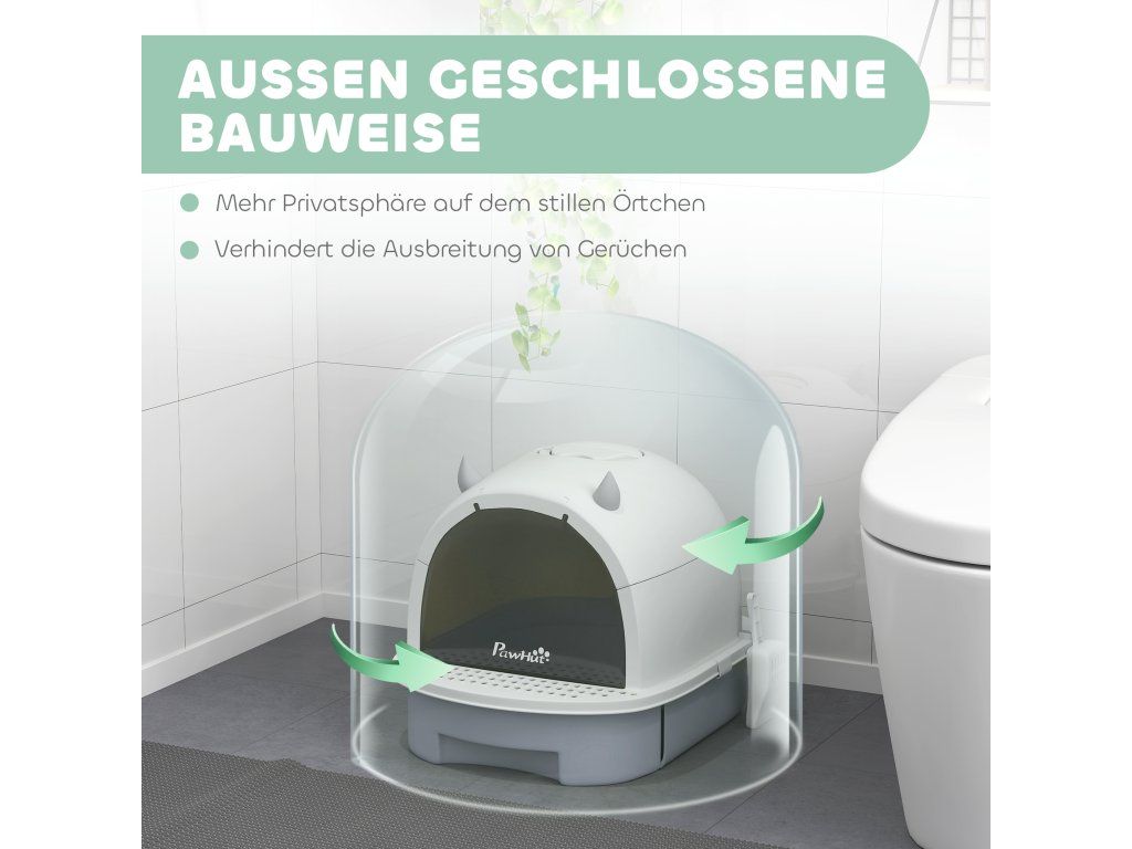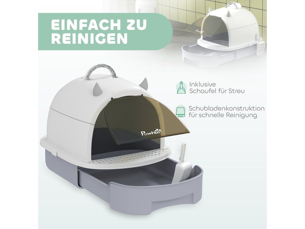Snadné čištění: Tato krytá toaleta je vybavena spodní zásuvkou a přiloženou lopatkou na stelivo a umožňuje rychlé a snadné čištění.