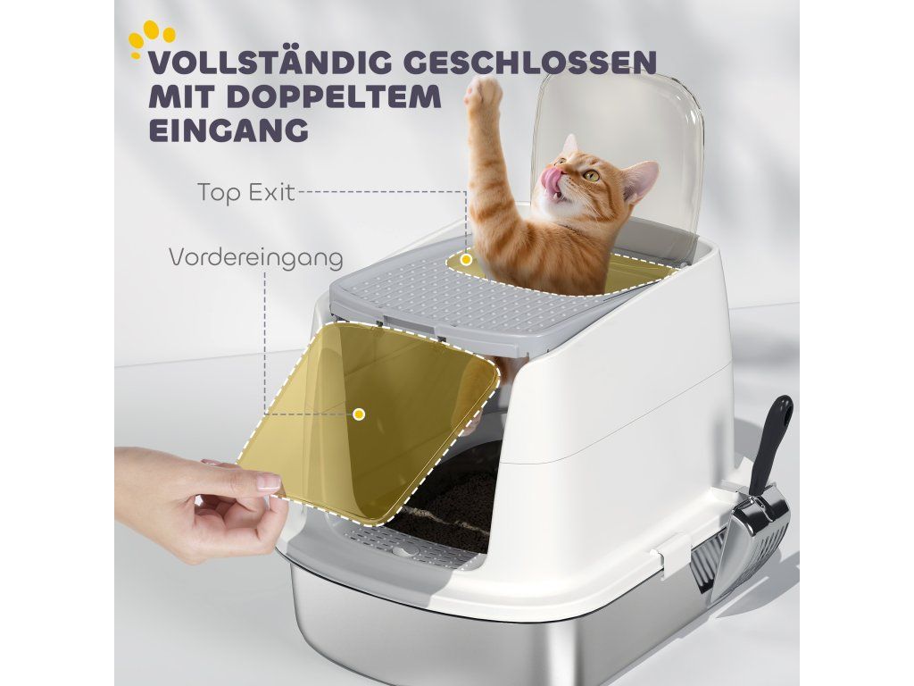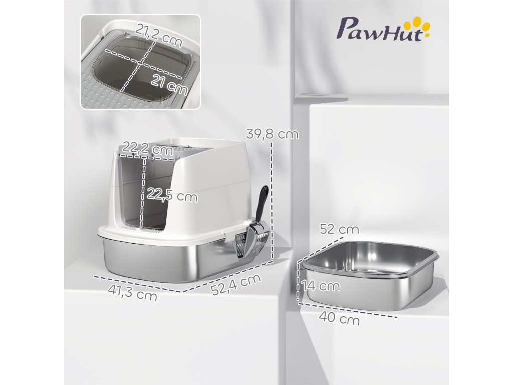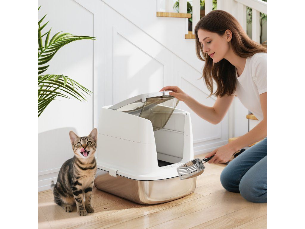 Už vás nebaví všude rozházené stelivo pro kočky a přetrvávající zápach? Nerezová krytá toaleta pro kočky zajišťuje čistotu a svěžest. Vnitřní vrstva odolná proti zápachu a poškrábání se dá vyčistit během několika sekund. Chytrý design s předním vstupem a horním výstupem minimalizuje nepořádek. Integrovaný lapač písku shromažďuje uvolněné stelivo a díky neutralizátoru zápachu a naběračce je každodenní úklid rychlý a snadný – ideální pro domácnosti milující kočky.