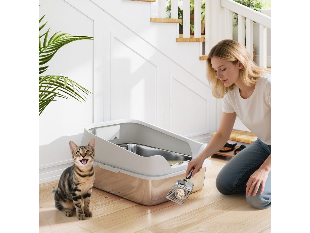 Součástí balení je robustní lopatka z nerezové oceli: Robustní lopatka se připevňuje k nerezové toaletě pro úsporu místa a umožňuje rychlé a efektivní čištění – udržuje prostor vaší kočky hygienický s minimální námahou.