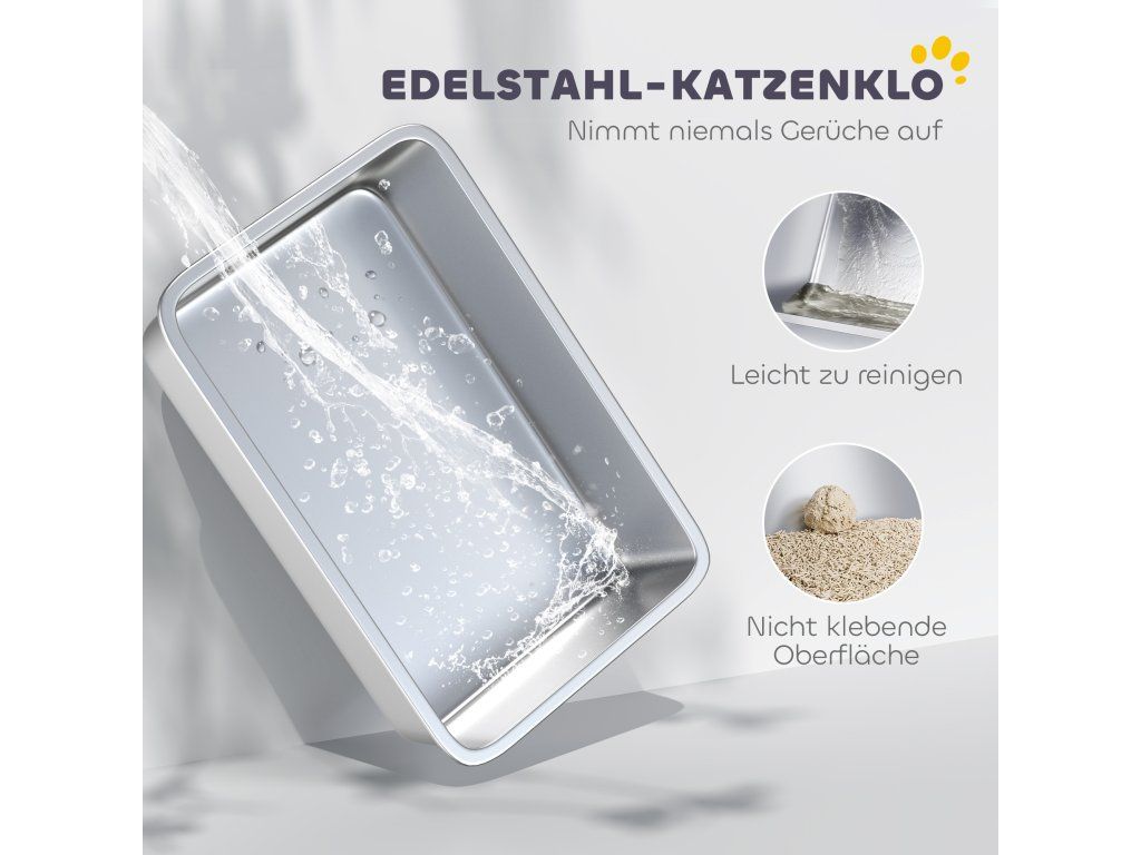 Ochrana proti stříkající vodě s vysokými bočnicemi: 15 cm vysoké bočnice této nerezové toalety udržují stelivo a exkrementy bezpečně uvnitř, čímž snižují nepořádek a usnadňují a zpříjemňují čištění zaneprázdněným majitelům koček.
