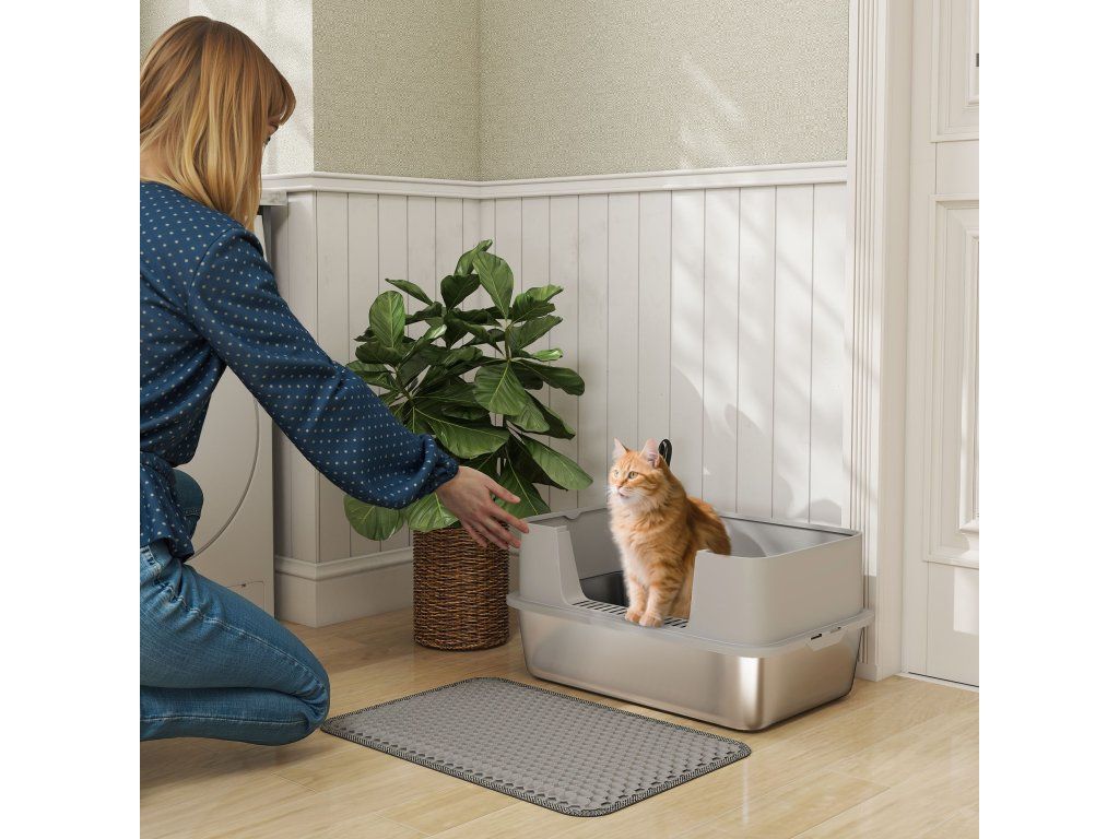 Hygienická konstrukce z nerezové oceli: Vysoce kvalitní nerezová ocel této toalety zabraňuje šíření bakterií, absorbuje pachy a zabraňuje přilepení steliva – zajišťuje tak dlouhotrvající čistotu a svěžest pro vás i vaši kočku.