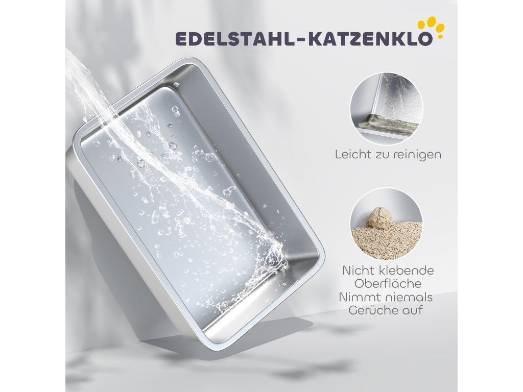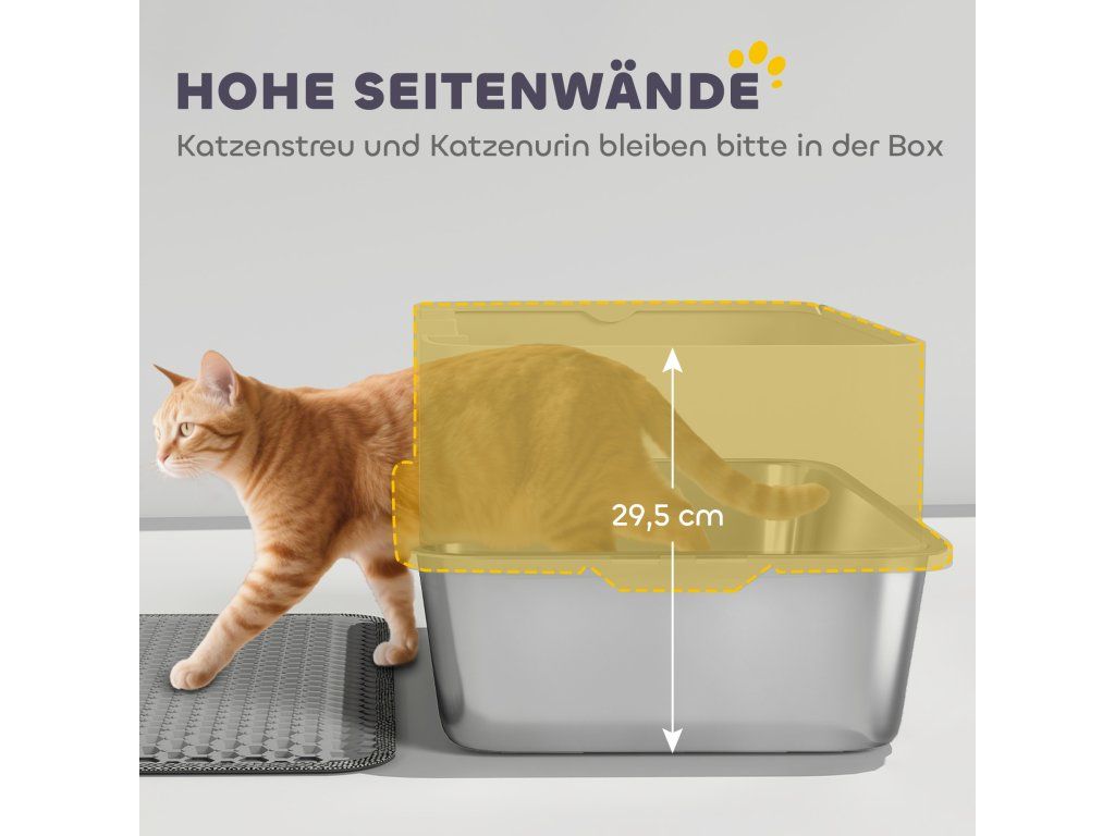 Prostorné pohodlí pro větší kočky: Tato kočičí toaleta z nerezové oceli je velkoryse dimenzována pro kočky do 7 kg a nabízí vašemu kočičímu příteli dostatek prostoru k otáčení, hrabání a hrabání.