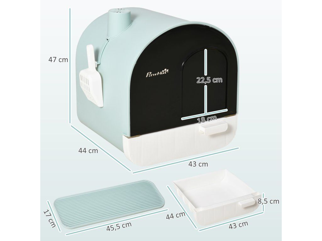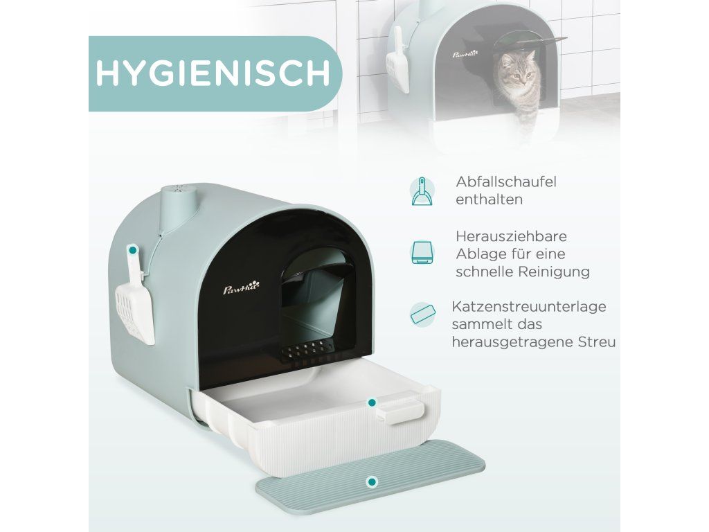 Odolný design: Kočičí toaleta je vyrobena z odolného plastu a její moderní design a jemné pastelové barvy se bez problémů hodí do jakéhokoli interiéru.