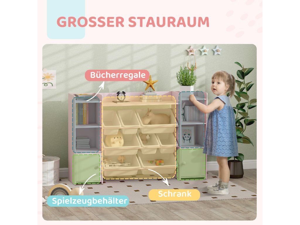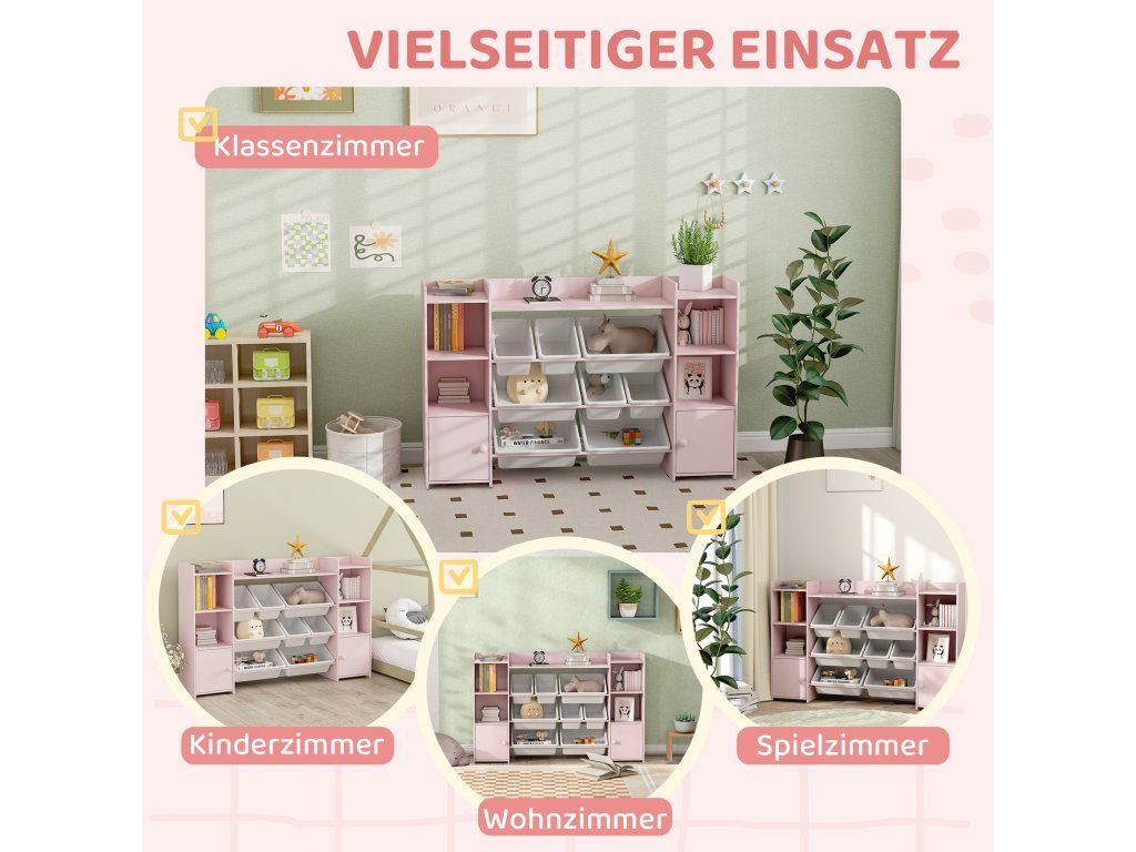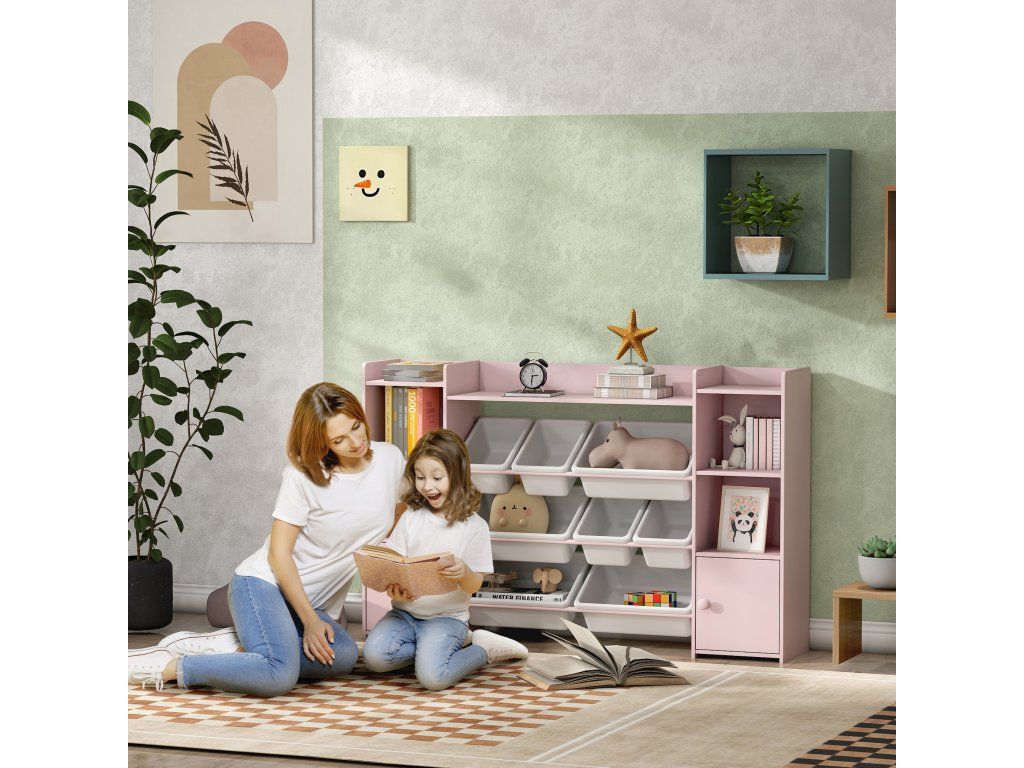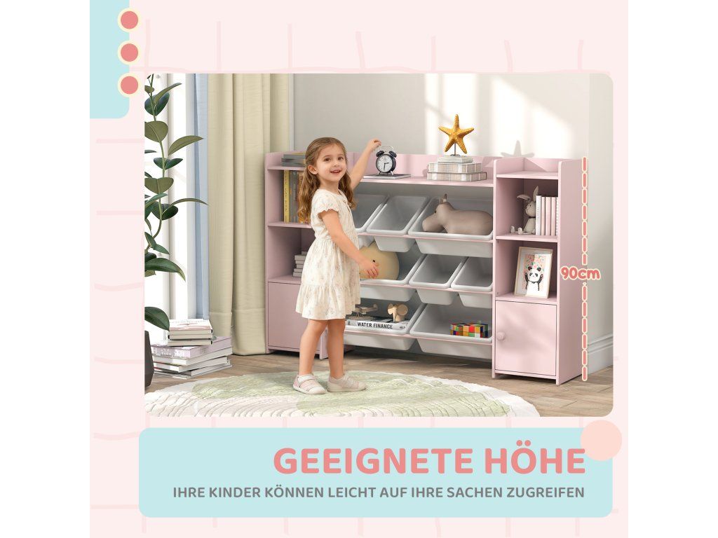 Všestranné úložné řešení: Tato multifunkční dětská police kombinuje knihovnu, krabice na hračky a skříňku, ideální pro úhledné uložení různých předmětů.
