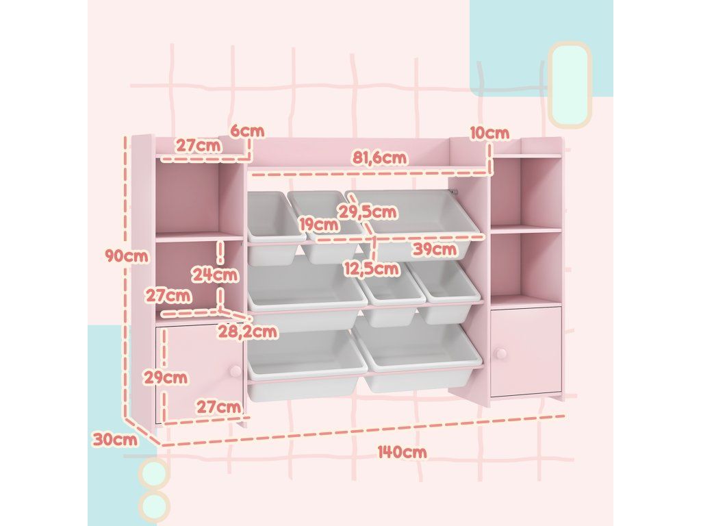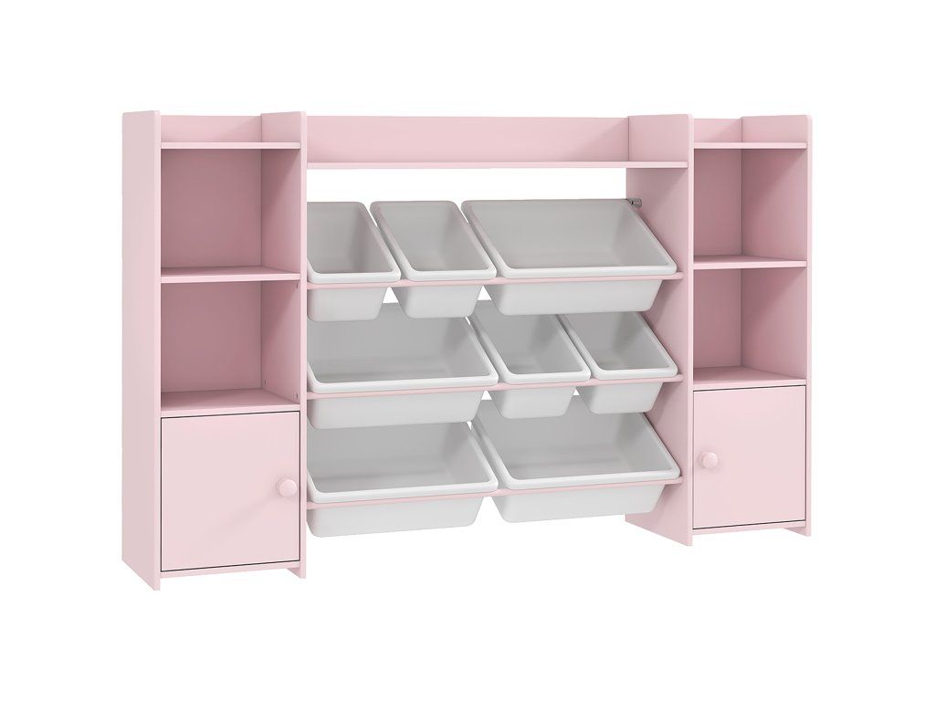 S dětskou policí 3 v 1 se úklid stává dětskou hrou! Tato inovativní kombinace knihovny, krabic na hračky a skříňky udržuje věci úhledně uspořádané. Skříňka je vybavena osmi vyjímatelnými krabicemi a policemi vhodnými pro děti a podporuje samostatnost malých dětí při úklidu. Tři přiložené samolepky nabízejí extra kutilskou zábavu a vybízejí k individuální dekoraci.