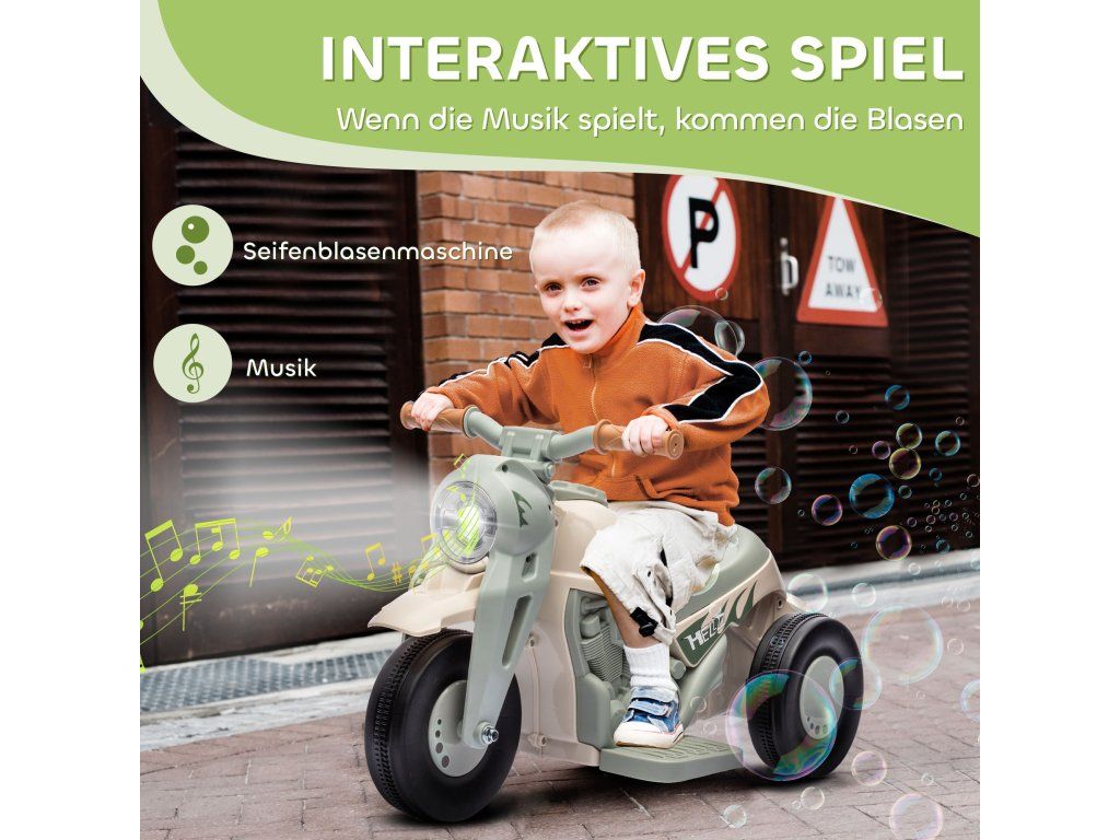 Zábavné a interaktivní: Darujte radost s touto elektrickou motorkou, která je nejen Tato elektrická motorka nejen jezdí vpřed a vzad, ale také fouká bublinky a hraje hudbu – zábava pro vaše děti je zaručena (bublinková tekutina není součástí balení).