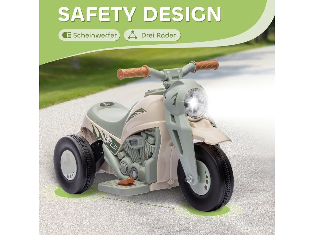 Osvětlená dobrodružství: Díky funkčnímu světlometu a třem robustním kolům nabízí tato elektrická dětská motorka bezpečné a vzrušující noční jízdy na vaší vlastní zahradě.