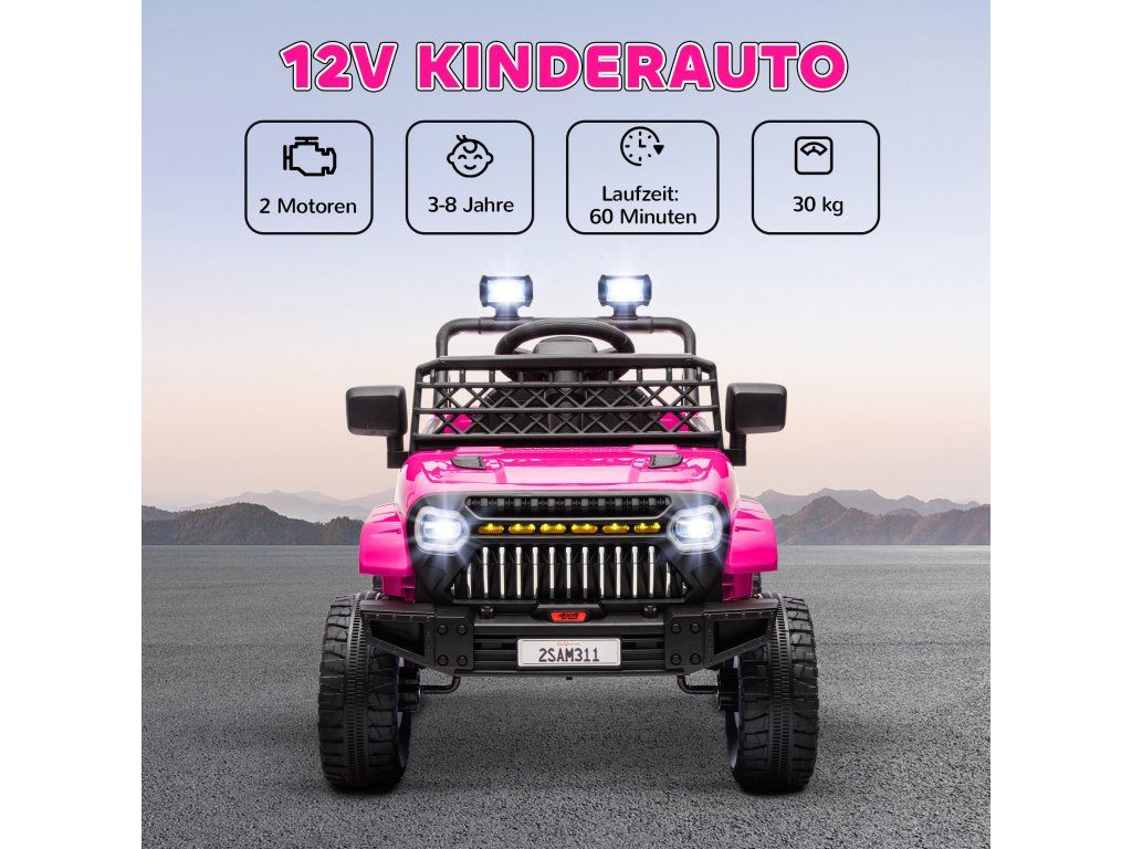 Dětské elektrické auto 12V promění hraní v dobrodružství. Je vybaveno dvěma motory a jezdí až 60 minut na různých površích. Plynulé odpružení a progresivní zrychlení zajišťují větší bezpečnost. Rodiče mohou auto ovládat pomocí dodávaného dálkového ovladače. Toto dětské auto dosahuje rychlosti až 5 km/h, je vybaveno hudbou z USB a světlomety pro realistickou zábavu při hraní.