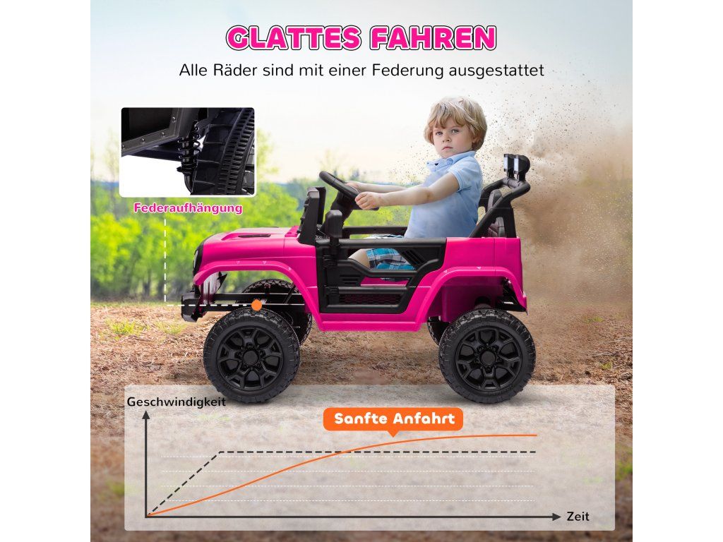 Všestranné možnosti rychlosti: Díky třem nastavitelným rychlostem od 3 do 5 km/h a dálkovému ovládání umožňuje toto dětské autíčko rodičovský dohled nebo samostatnou jízdu, čímž podporuje autonomii dětí.