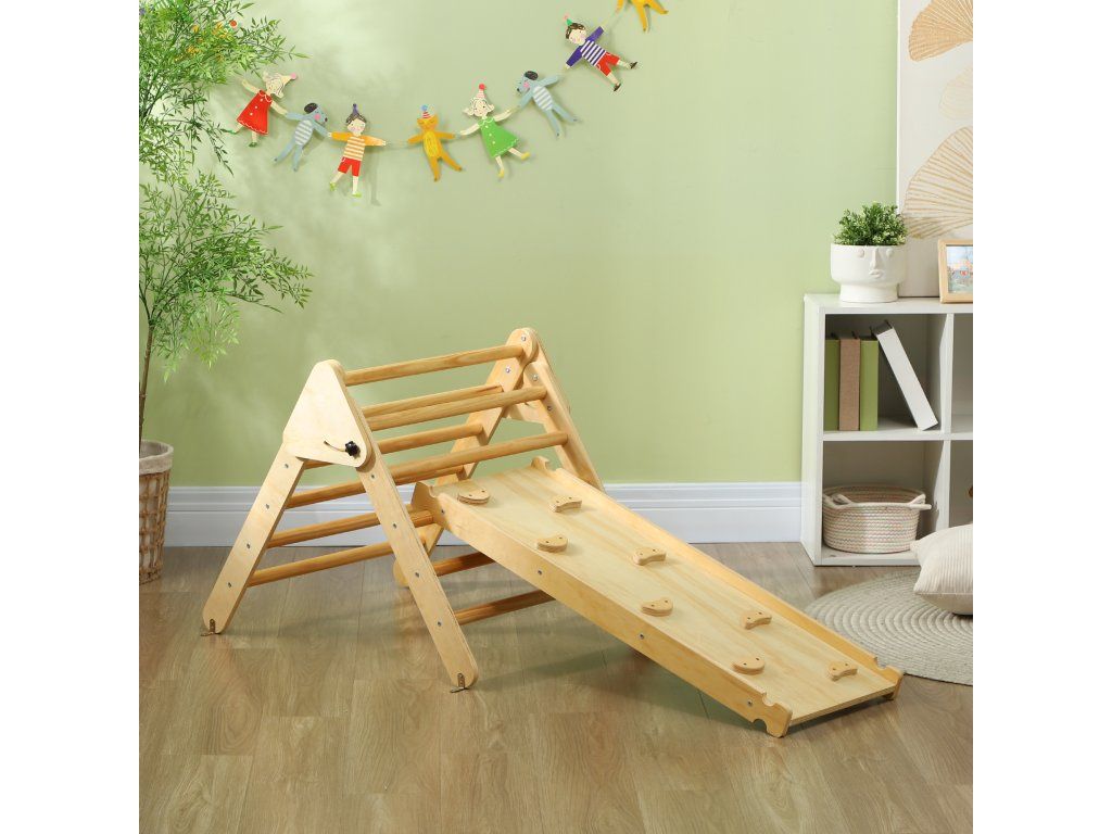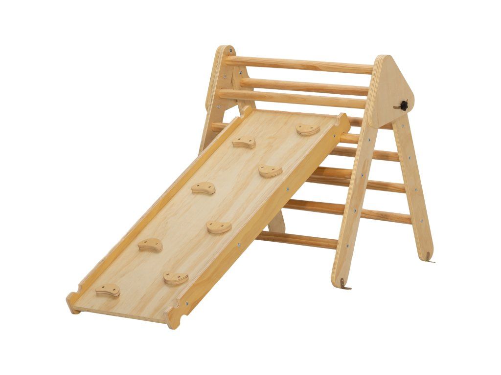 Podpořte přirozený motorický vývoj svého dítěte se sadou lezeckých rámů! Tato lezecká hračka obsahuje trojúhelníkový žebřík a skluzavku vyrobenou z hladké borovicové překližky. Rám se snadno skládá pro skladování a úhel skluzavky je nastavitelný pro nekonečnou zábavu. Tento lezecký trojúhelník, ideální pro použití v interiéru, bude novým vrcholem každé hry.