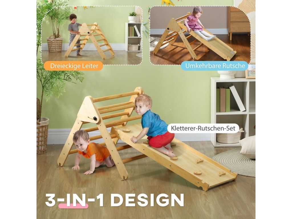 Všestranné hřiště: Tato sada prolézaček obsahuje trojúhelníkový žebřík a oboustrannou skluzavku pro různé lezecké hry, které podporují motorické dovednosti batolat.