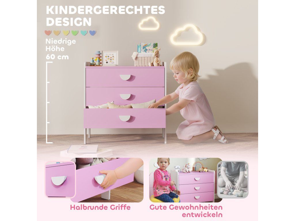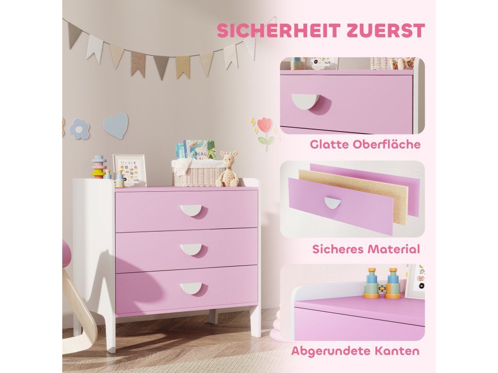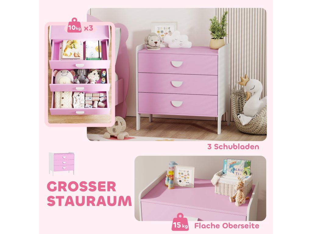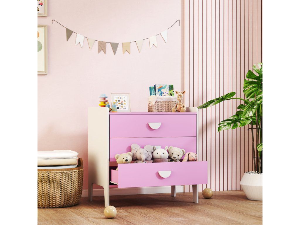 Dětská komoda se 3 zásuvkami | růžovo-bílá