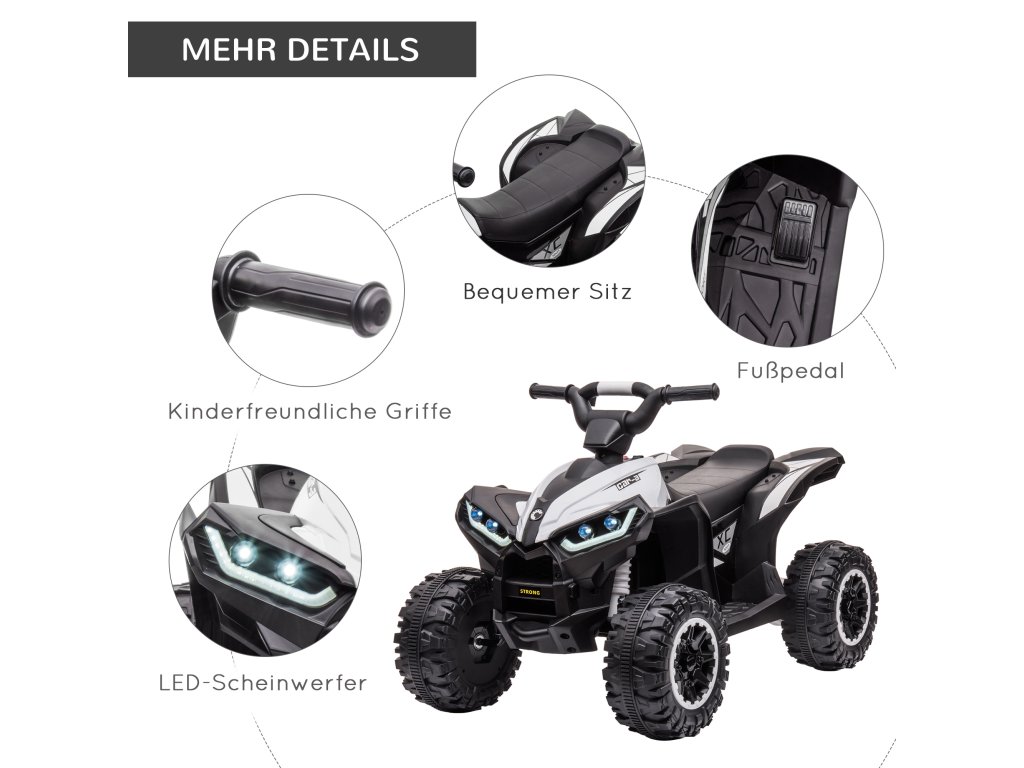 Realistický zážitek z jízdy: Vybavena LED světlomety a funkční... Díky klaksonu nabízí tato dětská čtyřkolka autentický zážitek z jízdy, který podněcuje fantazii a povzbuzuje k hraní venku.