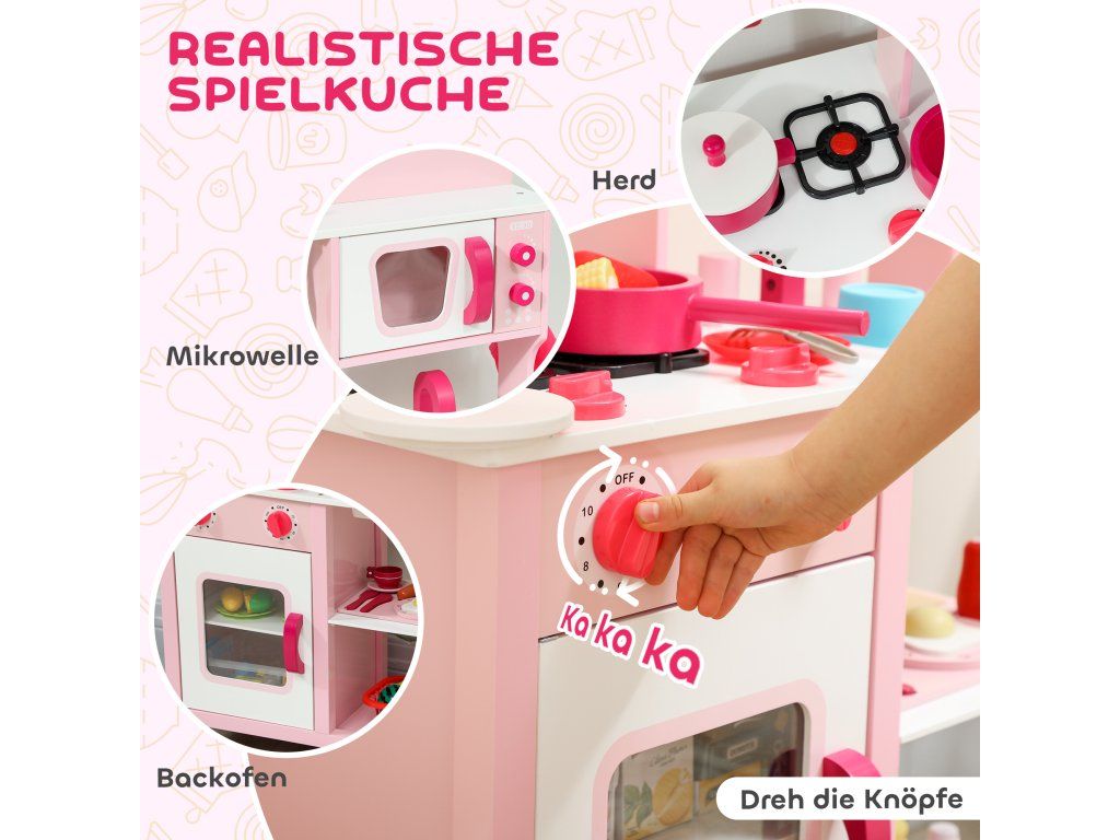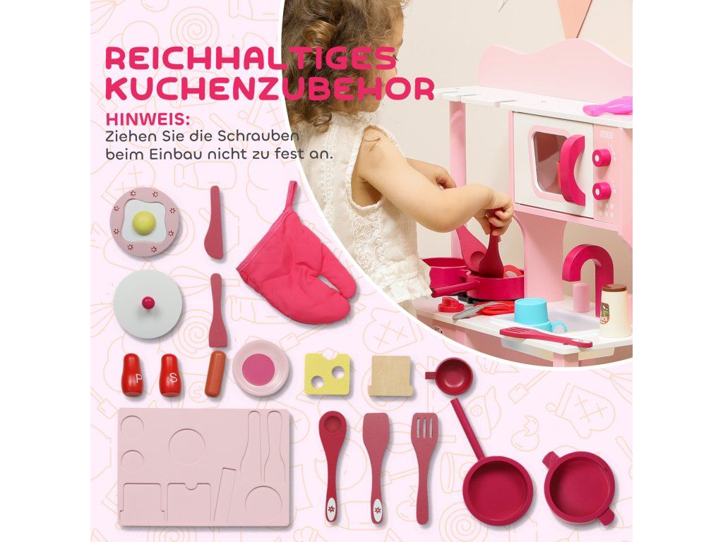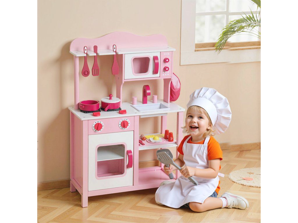 Kompletní kuchyňská sada na hraní: Vybavena mikrovlnnou troubou, sporákem a dřezy, vše s zábavnými zvukovými efekty, dřevěným kuchyňským náčiním a hracím jídlem, tato sada obsahuje vše, co mladí kuchaři potřebují pro svá první kulinářská dobrodružství.