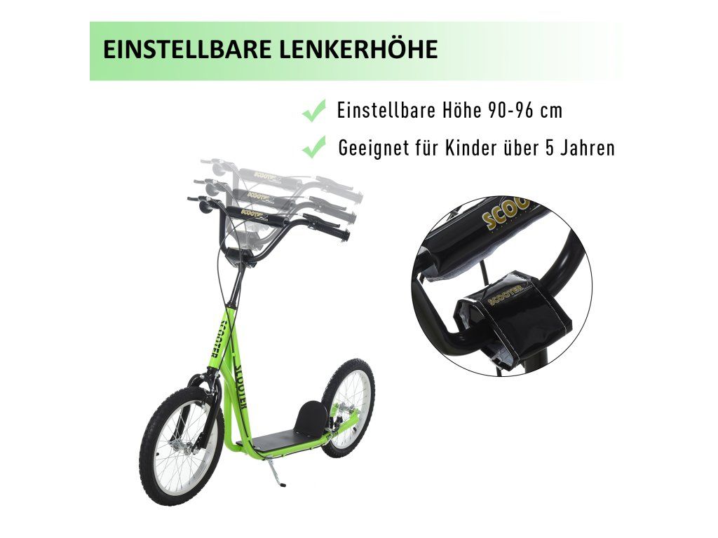 Dětská městská koloběžka 139 x 58 x 90-96 cm | zelená