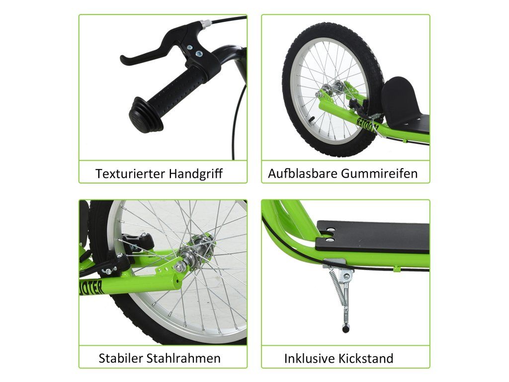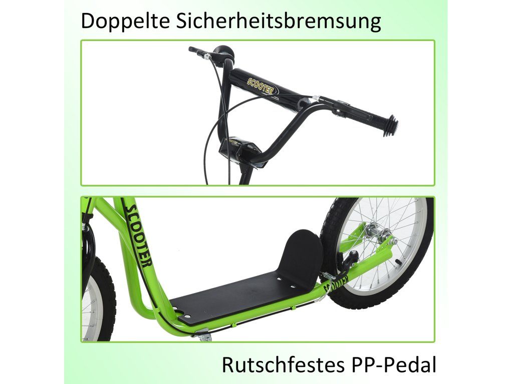 Bezpečnostní brzdy: Dvojitý brzdový systém pro přední a zadní kola usnadňuje dětem bezpečné zastavení pěšky, zatímco ruční brzda vyžaduje větší sílu. Nízká plošina a velká kola zajišťují plynulejší jízdu.