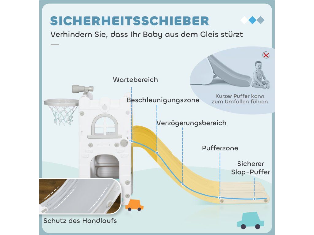 Zažijte nekonečnou zábavu s dětskou skluzavkou! Naše skluzavka 5 v 1 pro batolata nabízí vzrušující skluzavku se zónami zrychlení a zpomalení a bezpečnostní nárazník. Součástí je také basketbalový koš a dalekohled pro dobrodružné hraní. S uzavřenými schůdky, které zabraňují uklouznutí, je ideální pro malé průzkumníky ve věku 1–3 let.