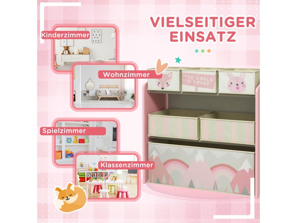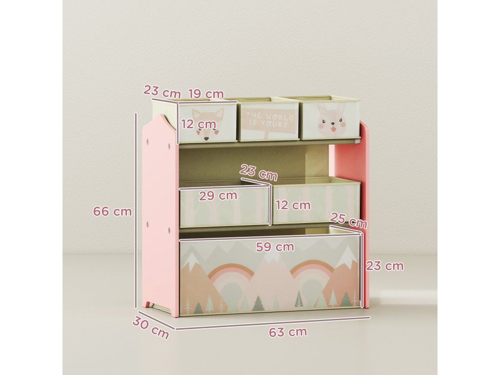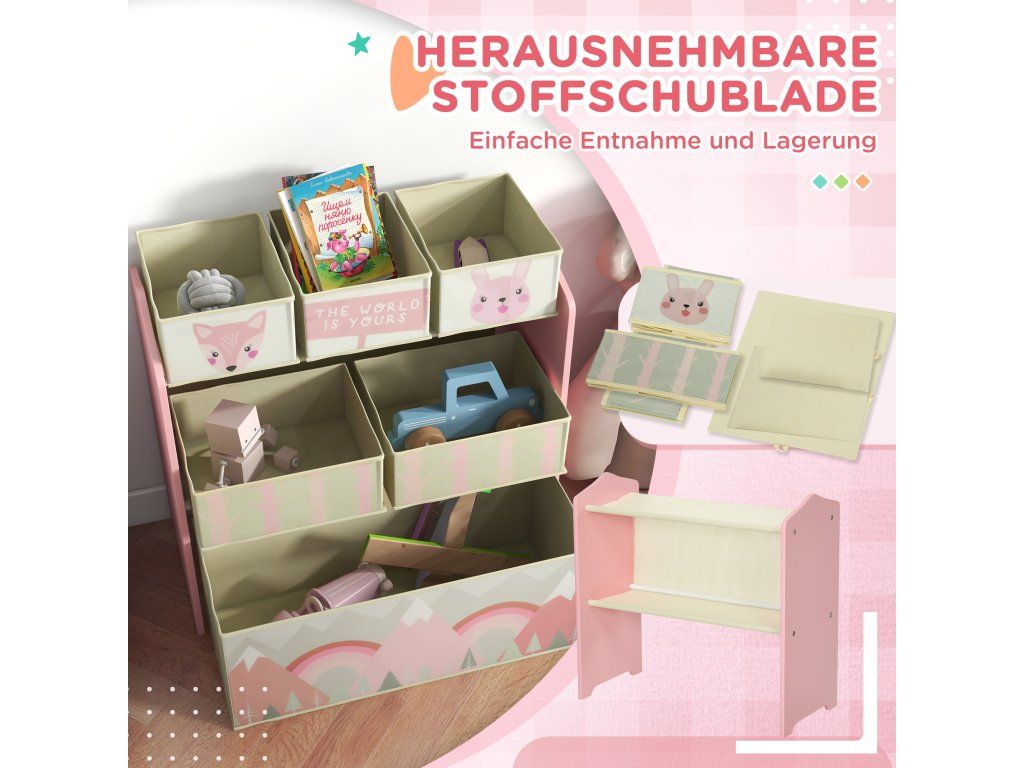 Dostatek úložného prostoru: Tato police na hračky nabízí 3 malé, 2 střední a 1 velkou přihrádku, ideální pro uložení hraček, knih, svačin a oblečení vašeho dítěte.