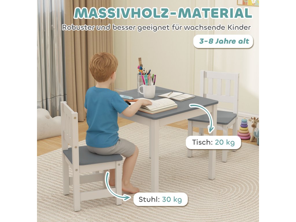 Pro rostoucí děti: Tato sada dětského stolu a židlí je ideální pro děti ve věku 3 až 8 let a má opěradla pro podporu zdravého držení těla a samostatnosti při hraní a učení.