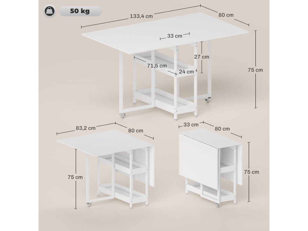 ✔ Nosnost: 50 kg (celkem), 10 kg (skládací deska), 30 kg (deska stolu), 20 kg (otevřený prostor)