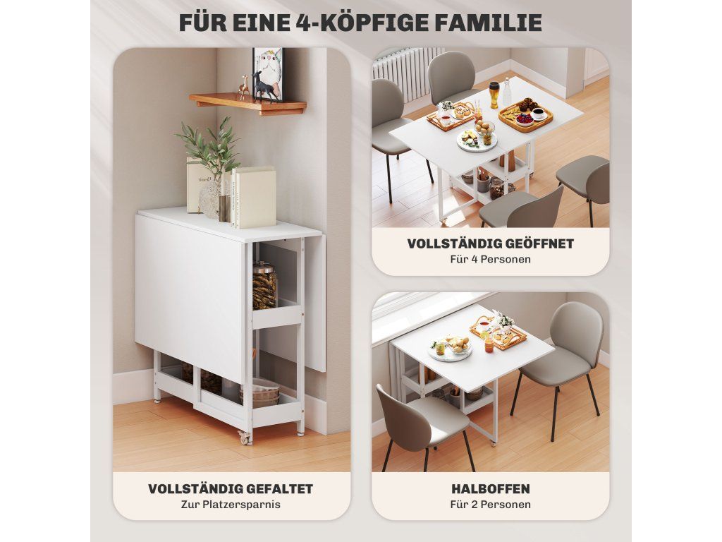 Ubytování pro více hostů: Tento malý kuchyňský stůl nabízí díky dvěma výklopným bočnicím dostatek prostoru až pro 4 osoby – ideální pro rodinné večeře nebo setkání. V polorozloženém stavu pohodlně pojme dva.