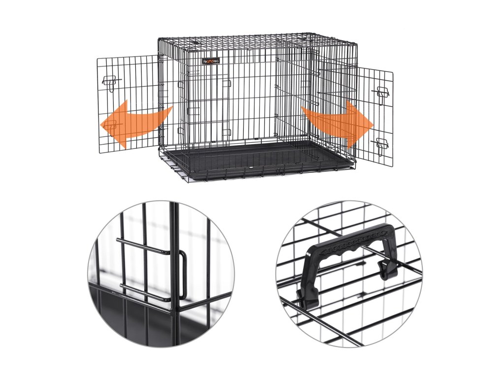 Klec pro psy, přepravka pro psy se 2 dvířky, 107 x 70 x 77,5 cm, černá.