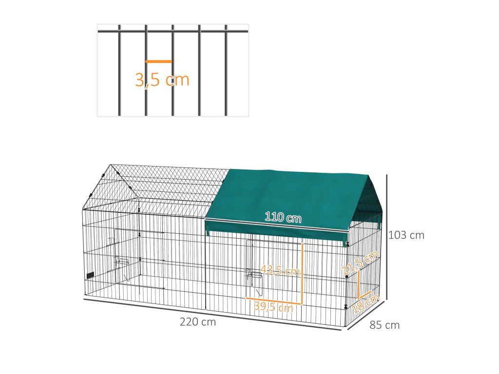 Ohrádka pro malá zvířata se střechou 220 x 85 x 103 cm | zeleno-černá