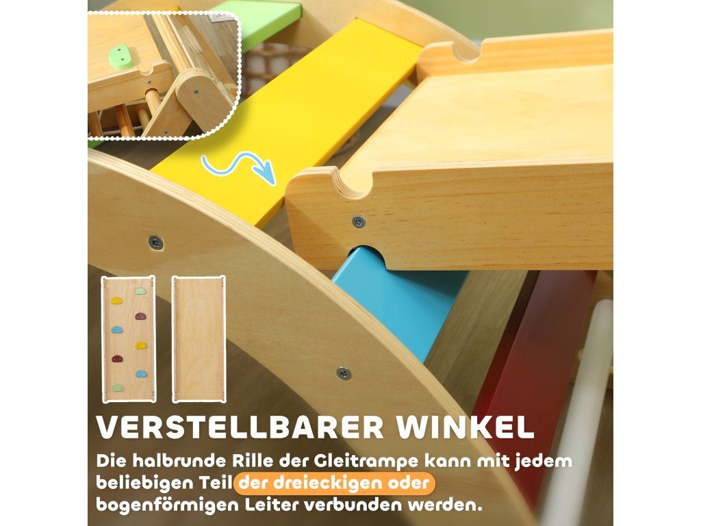 Dvojnásobná zábava pro dva: Unese až 50 kg. Tento lezecký trojúhelník se skluzavkou je ideální pro společné zážitky dvou dětí, ideální pro sourozence nebo přátele. Podporuje aktivní a bezpečnou interakci a radostný pocit objevování.