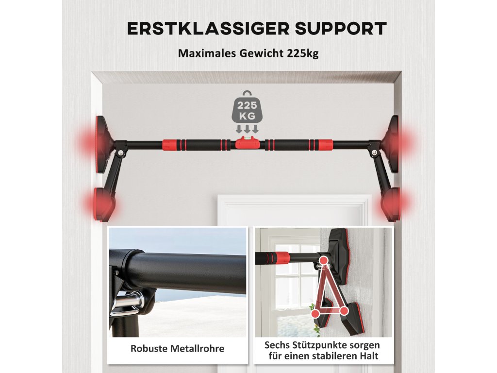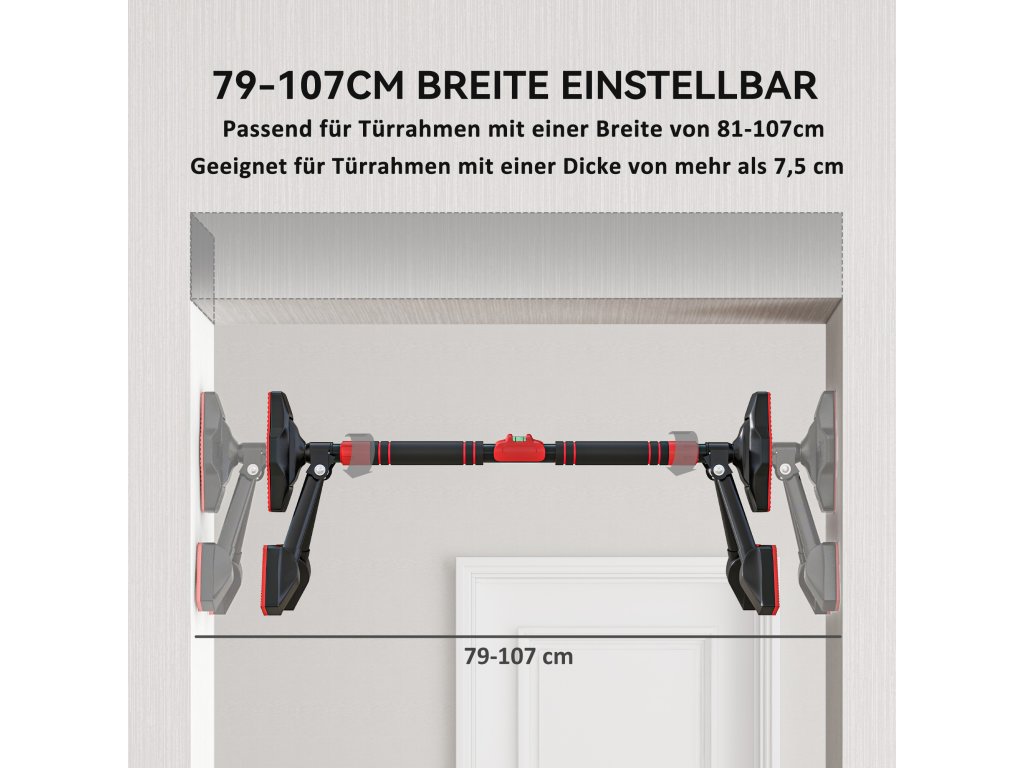 ✔ Nastavitelná šířka hrazdy na dveře je vhodná pro zárubně o velikosti 79-107 cm (šířka zárubně musí být větší než 15 cm).