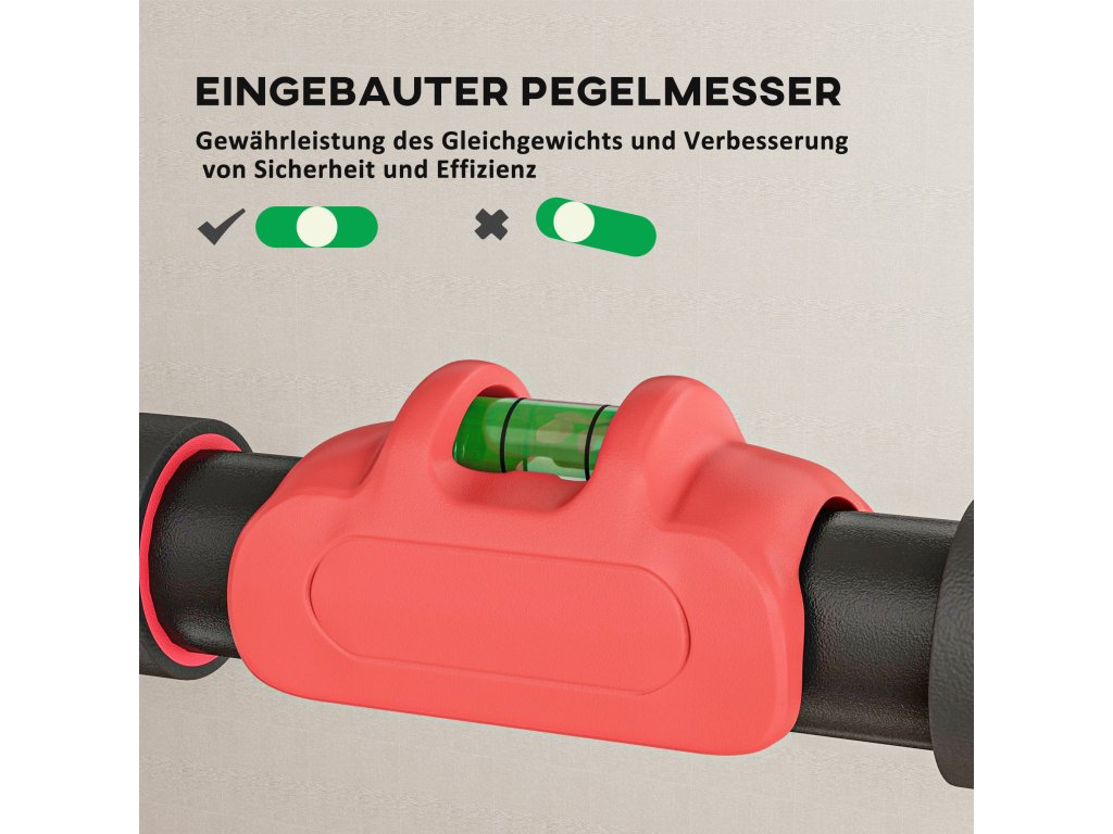 Integrovaná vodováha: Vestavěná vodováha hrazdy umožňuje rychle zkontrolovat, zda je hrazda nainstalována rovnoměrně, a vytváří tak vyvážené a efektivní cvičební prostředí.