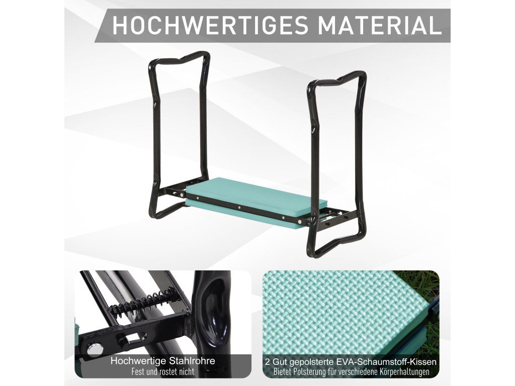 Zahradní klečící lavice je perfektním doplňkem pro každého zahradníka. Její ergonomický design zabraňuje bolesti kolen, pomáhá při vstávání a poskytuje pohodlné sezení. Pokud trpíte artritidou nebo máte z jakéhokoli jiného důvodu potíže s klečením a vstáváním, je to přesně to, co jste hledali. Pohodlné 8 mm polstrování (na každé straně) chrání vaše kolena při klečení a loketní opěrky usnadňují vstávání.