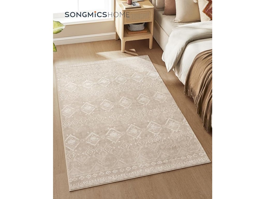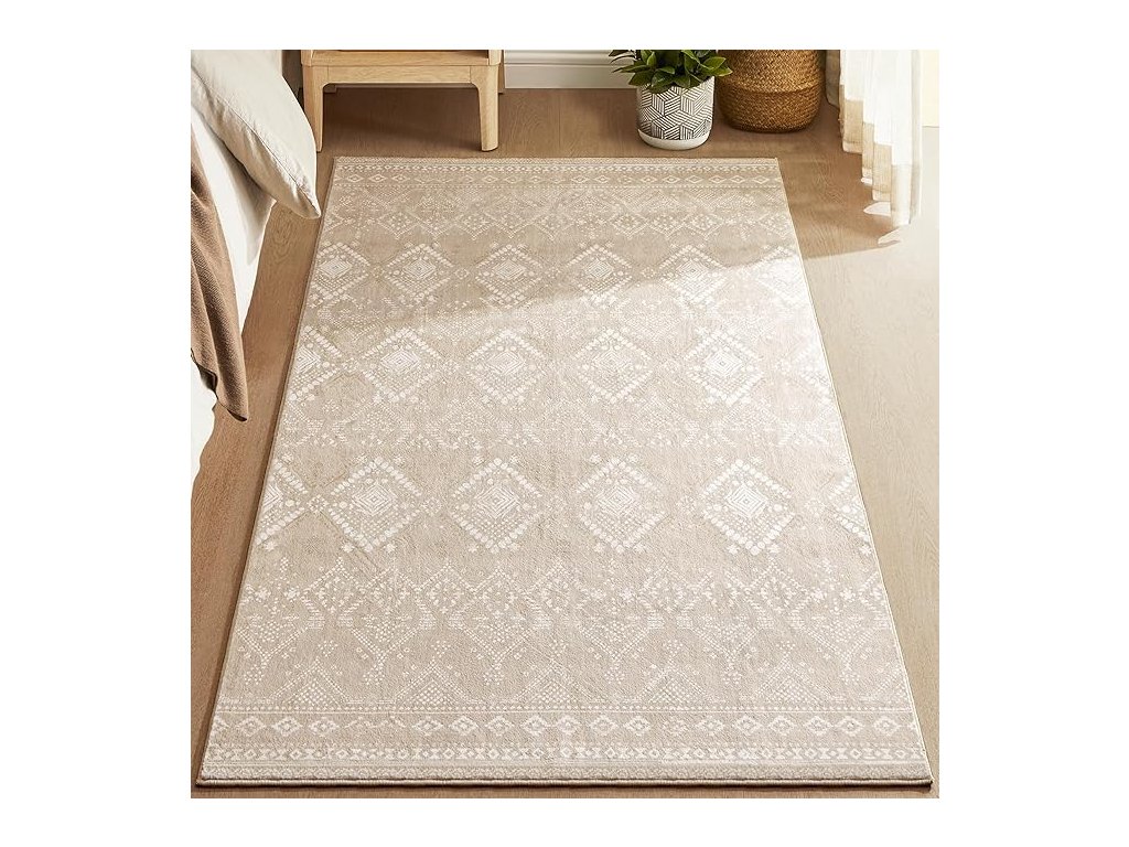 Koberec, 120 x 170 cm, do ložnice, do obývacího pokoje, protiskluzový koberec, bytové dekorace, do obývacího pokoje, lze prát v pračce, v boho stylu, béžové cappuccino.