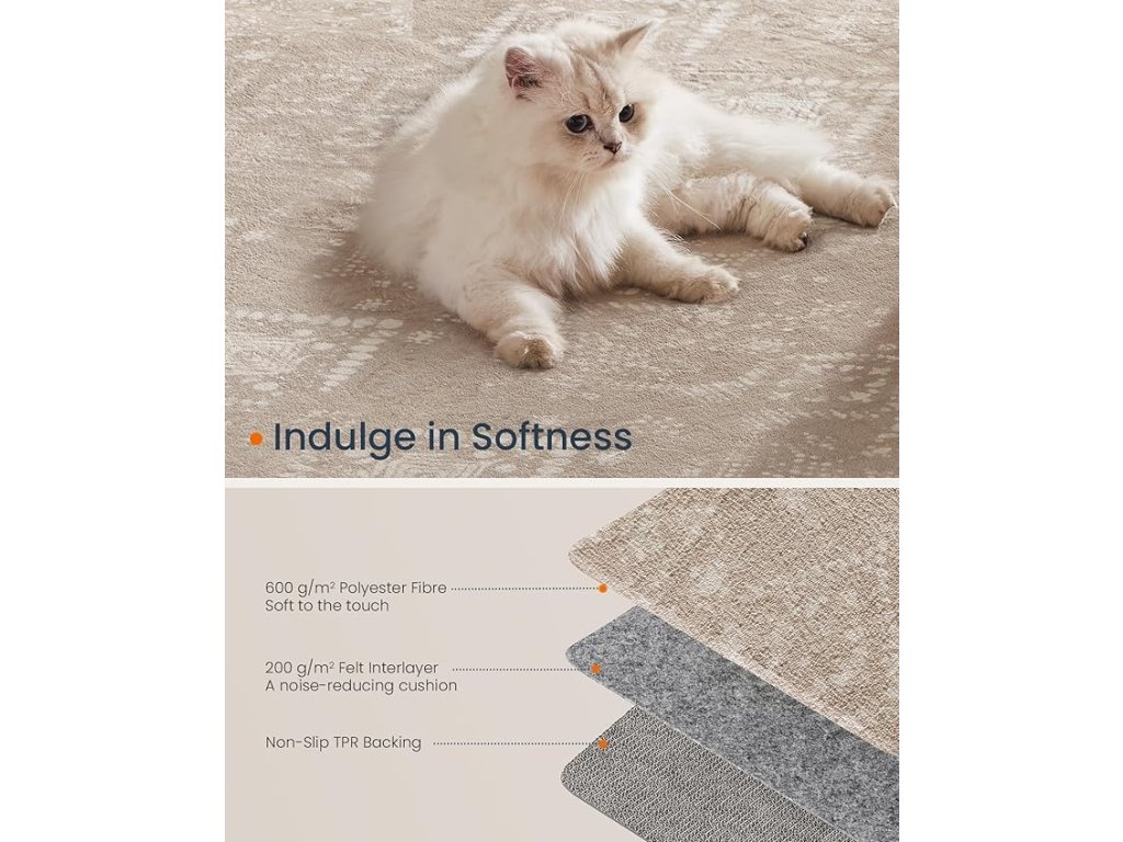 【UŽÍVEJTE SI POHODLÍ】 Tento koberec s povrchem z polyesterových vláken o hmotnosti 600 g/㎡ a plstěnou mezivrstvou o hmotnosti 200 g/㎡ nabízí měkkou strukturu. ideální pro tlumení nohou při vstávání z postele nebo pro lenošení při čtení.