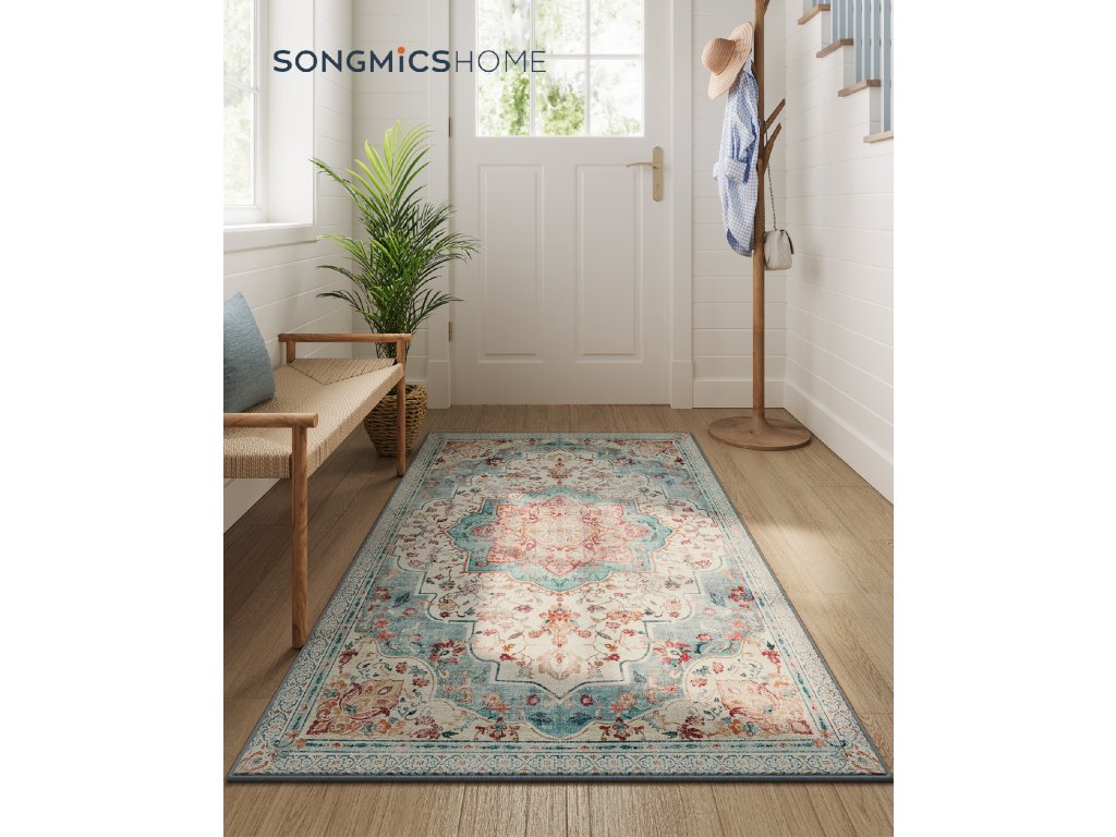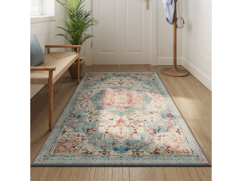 Koberec, 3x5 stop, do ložnice, protiskluzový koberec, tradiční vintage styl, domácí dekorace, do obývacího pokoje, kuchyně, předsíně, jídelny, lze prát v pračce, modrý.