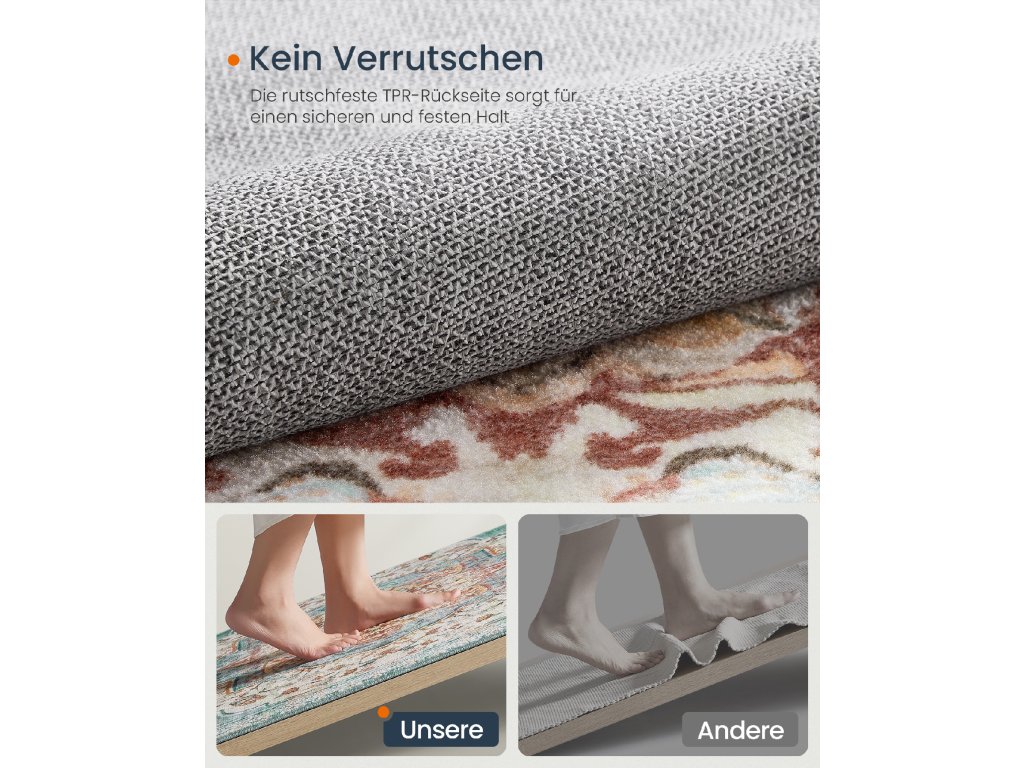 【NESKLUZAVÝ A VŠESTRANNÝ】 Tento koberec s podkladem z TPR má výjimečné protiskluzové vlastnosti, které zajišťují, že zůstane bezpečně na svém místě na různých typech podlah, včetně tvrdého dřeva, dlažby a dalších materiálů. a další