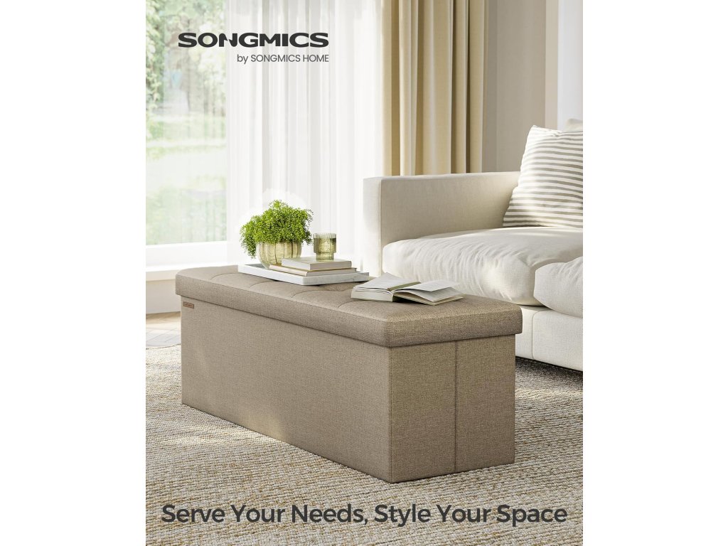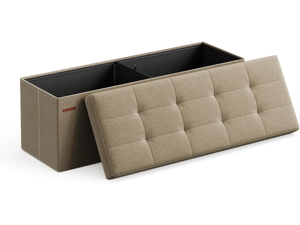 Skládací lavice s úložným prostorem, opěrka na nohy, lavice na konci postele, úložná truhla, do obývacího pokoje, ložnice, předsíně, velbloudí hnědá.