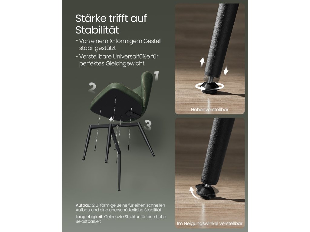 Nová definice pohodlí Mírně zakřivené opěradlo vás obejme, zatímco 9,7 cm silný, polstrovaný sedák z měkké syntetické kůže vás vybízí k posezení. i dlouho poté, co jste dojedli.Síla a stabilita Robustní ocelové nohy této židle s opěradlem tvoří pevný základ a snadno unesou až 120 kg. Otočné vyrovnávací nožičky zajišťují stabilitu i na mírně nerovných podlahách a chrání podlahu před poškrábáním.Snadná montáž Rozlučte se se složitou montáží! Díky jasnému návodu a označeným dílům lze vaši novou jídelní židli sestavit během chvilky a montáž je tak velmi příjemná.Bezproblémový úklid Rozlil jsi něco na židli? Žádný problém! Snadno čistitelná syntetická kůže vám umožní skvrny bez námahy setřít. abyste se mohli soustředit na chutné jídlo a ne na následný úklid.| Kategorie: | Jídelní židle |