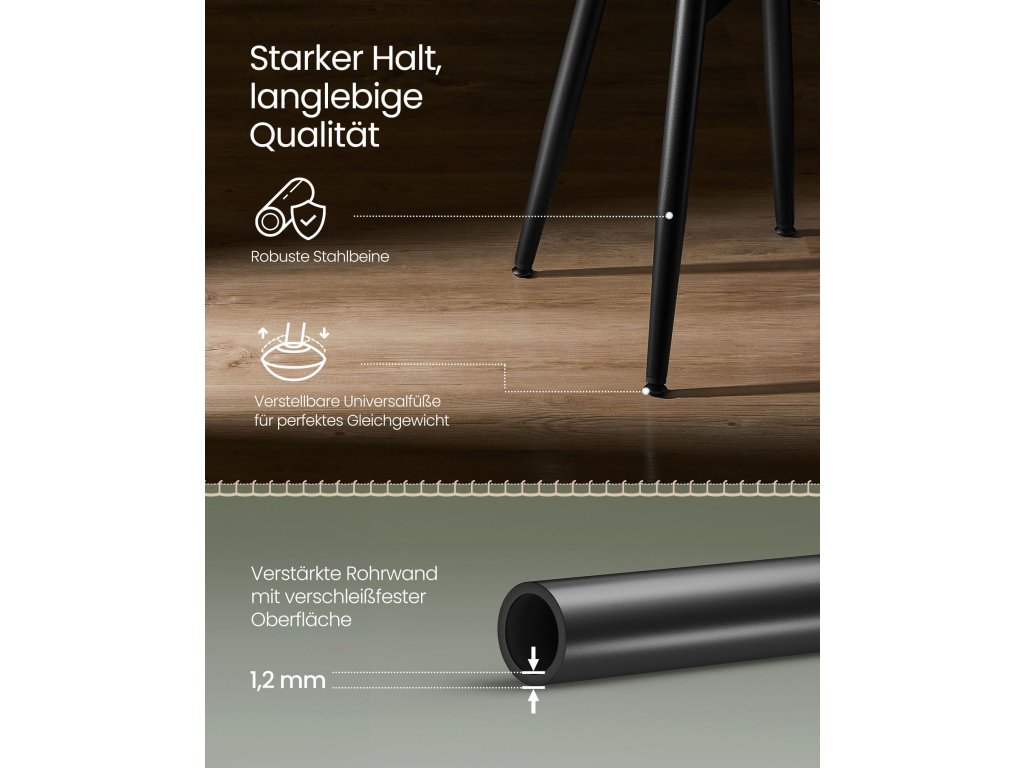 Oživte svůj prostor Tato jídelní židle z kolekce VASAGLE EKHO je vyrobena z umělé kůže s bohatou texturou a jemné prošívání svědčí o řemeslném zpracování. vytvoření domova, který vypovídá o vašem stylu.Pohodlí při každém usednutí Přejeďte rukou po hladkém potahu a zabořte se do 8 cm silné tvarované pěny 58D. Tato čalouněná židle poskytuje pohodlné sezení, které obstojí ve zkoušce času.Stabilní a šetrné k podlaze Kovové nohy, které stojí směrem ven a tvoří pevnou základnu, spolu s nastavitelnými univerzálními nožičkami zajišťují této stoličce nejen vysokou stabilitu na nerovných podlahách, ale i stabilitu na podlaze. ale také chrání podlahu před poškrábánímSnadná instalace Tuto jídelní stoličku sestavíte během chvilky: jednoduše připevněte desku stoličky k podstavci a vaše nové sezení je připraveno zdobit vaši jídelnu.Úspora místa, vytváření scény Tato stolička se perfektně hodí pod jídelní stůl nebo do stísněného prostoru. Ať už se nachází v jídelně, obývacím pokoji, ložnici nebo pracovně, tato stolička dokonale zapadne do jakéhokoli prostředí.| Kategorie: | Jídelní židle |