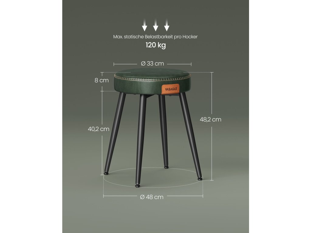 Jídelní židle, kuchyňská židle, umělá kůže, moderní styl poloviny století, výška 48,2 cm, snadná montáž, ložnice, lesní zelená.