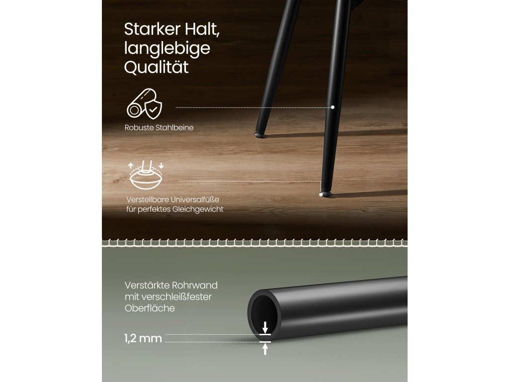 Styl mluví za vše Tyto jídelní židle z kolekce VASAGLE EKHO s bohatě strukturovaným PU se vyznačují vytříbenou estetikou. Švy prokazují kvalitu výroby, patky zdůrazňují jejich zúžený profil.Redefine comfort Užijte si pohodlí těchto židlí. Jejich prohnutá opěradla vás obejmou do objímající náruče. Sedák s polstrováním o tloušťce 8 cm, potažený měkkým PU na dotek, vybízí k posezení i po jídle.Robustnost a stabilita Díky robustním ocelovým nohám unese každá kuchyňská židle až 120 kg. Kloubové nastavitelné nožičky zajišťují stabilitu i na mírně nerovných podlahách a zabraňují poškrábání podlahy.Snadná montáž Rozlučte se se složitými montážními kroky! Díky ilustrovaným návodům a označeným dílům bude vaše nová sada židlí připravena během chvilky a montáž se tak stane příjemným časem.Snadné čištění Rozlila se vám na židli voda? Nepropadejte panice! Díky snadno čistitelnému PU povrchu ji můžete v mžiku otřít. abyste se mohli soustředit na potěšení z jídla a ne na uklízení.| Kategorie: | Jídelní židle |