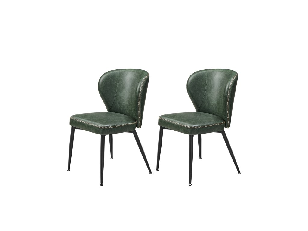 Sada 2 jídelních čalouněných židlí, PU s prošíváním, moderní v polovině století, obývací pokoj, recepce, restaurace, lesní zelená.