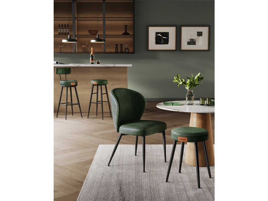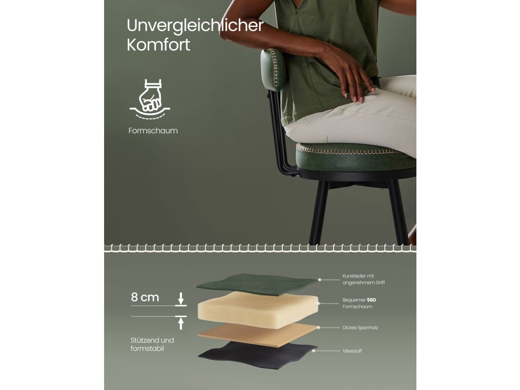 Čalouněné kuchyňské stoličky, syntetická kůže s prošíváním, snadná montáž, lesní zelená barva.