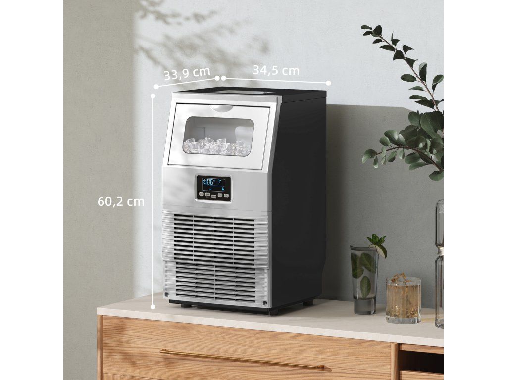 Vysoká účinnost: Až 30 kg čtvercových kostek ledu denně a 32 nových kostek každých 12–20 minut. S košem na led o objemu 4 kg je tento výrobník ledu ideální pro domácí i komerční použití.