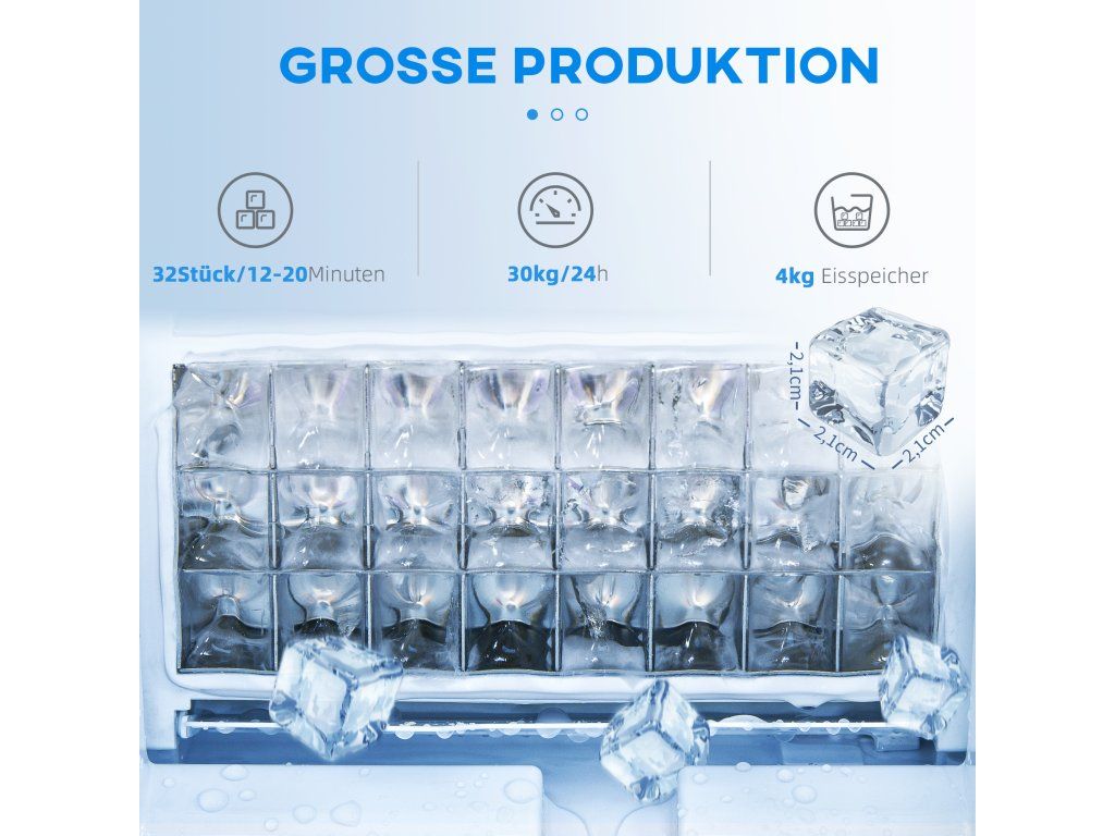 ✔ Produkce ledu: 30 kg/den, 32 kusů/12-20 min