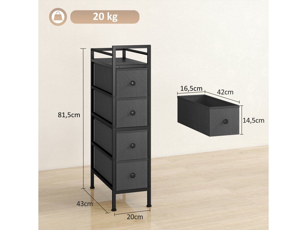 Komoda se 4 zásuvkami 20 x 43 x 81,5 cm | černá