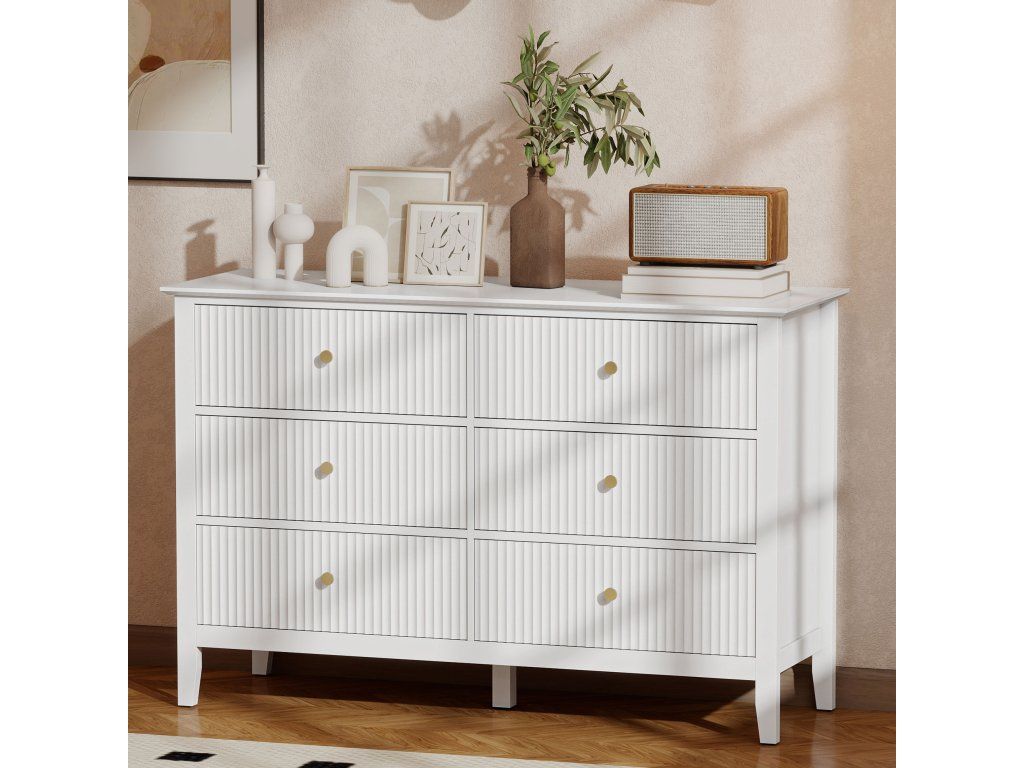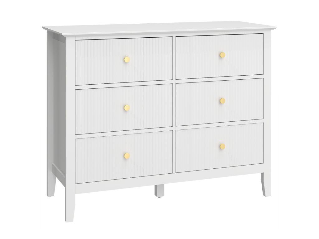 Pokud se vaše ložnice zdá přeplněná, komoda se šesti zásuvkami a velkorysou pracovní plochou okamžitě vnese do vašeho prostoru pořádek a eleganci. Dveře ve tvaru křídel a zlaté úchytky dodávají moderní kouzlo, zatímco zesílený rám, nastavitelné nožičky a pojistka proti převrácení zajišťují stylový a dobře organizovaný domov.